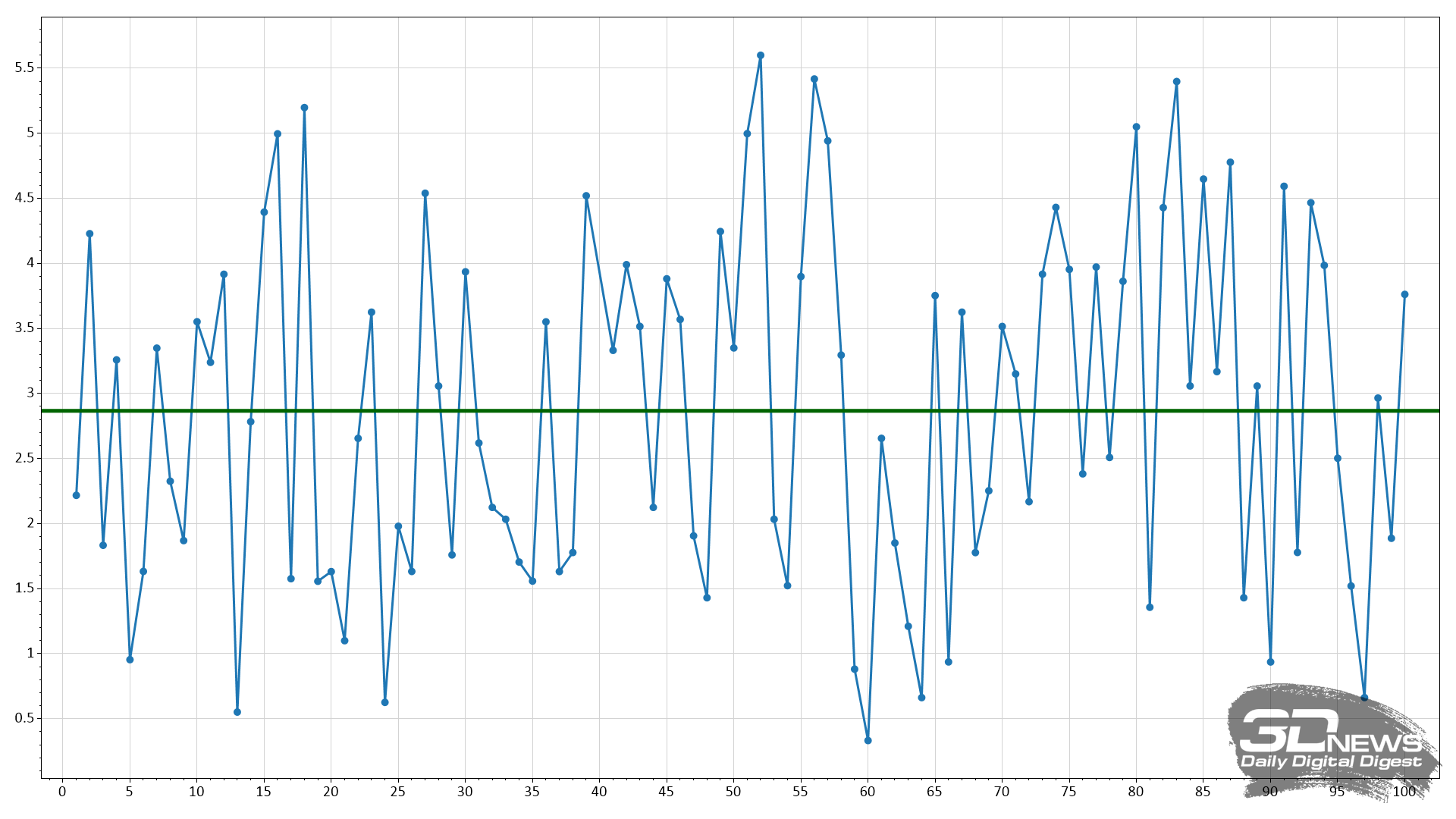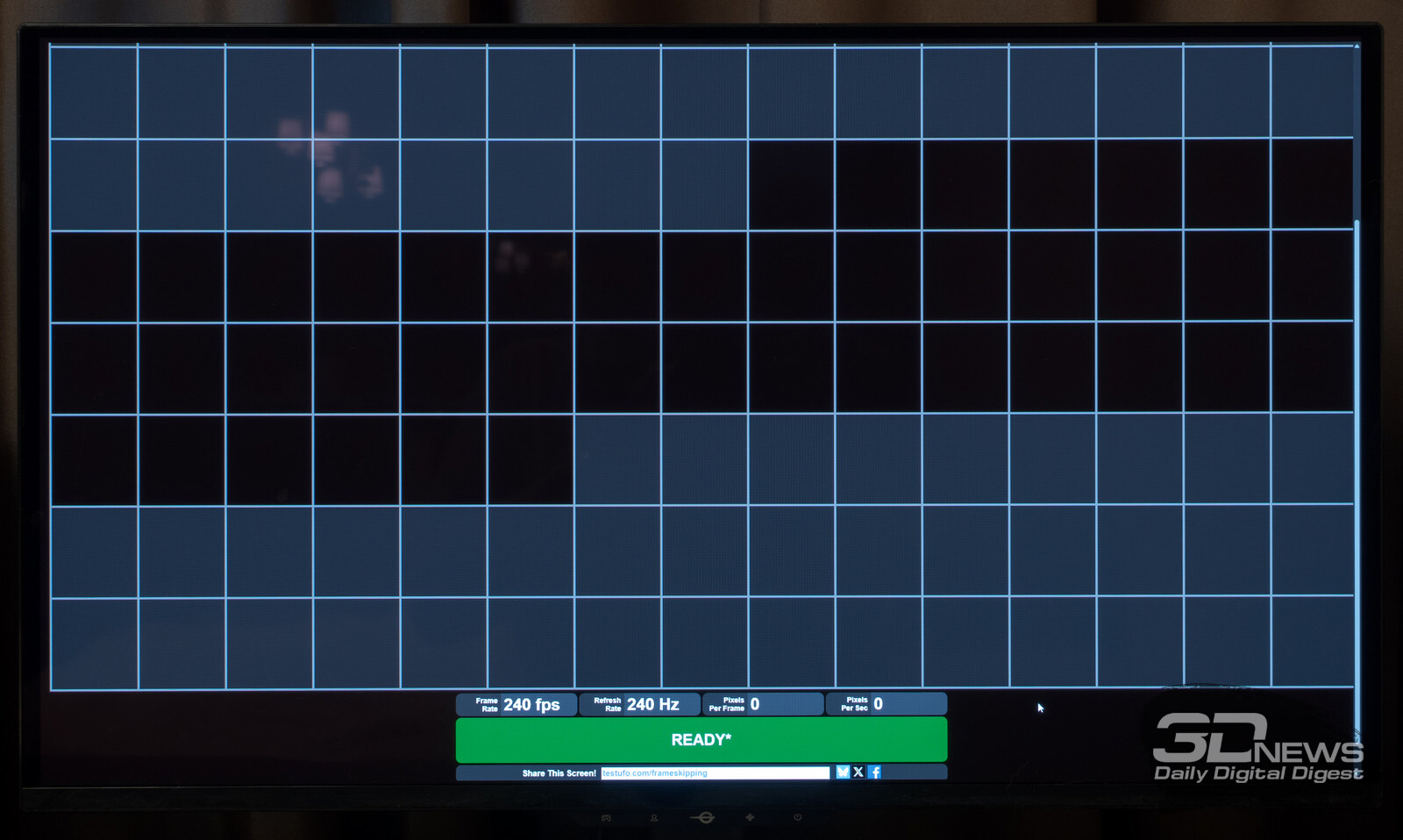 Говоря про стабильность максимальной частоты развёртки, можно отметить, что и тут всё хорошо. Специальный тест из пакета TestUFO это полностью подтверждает.