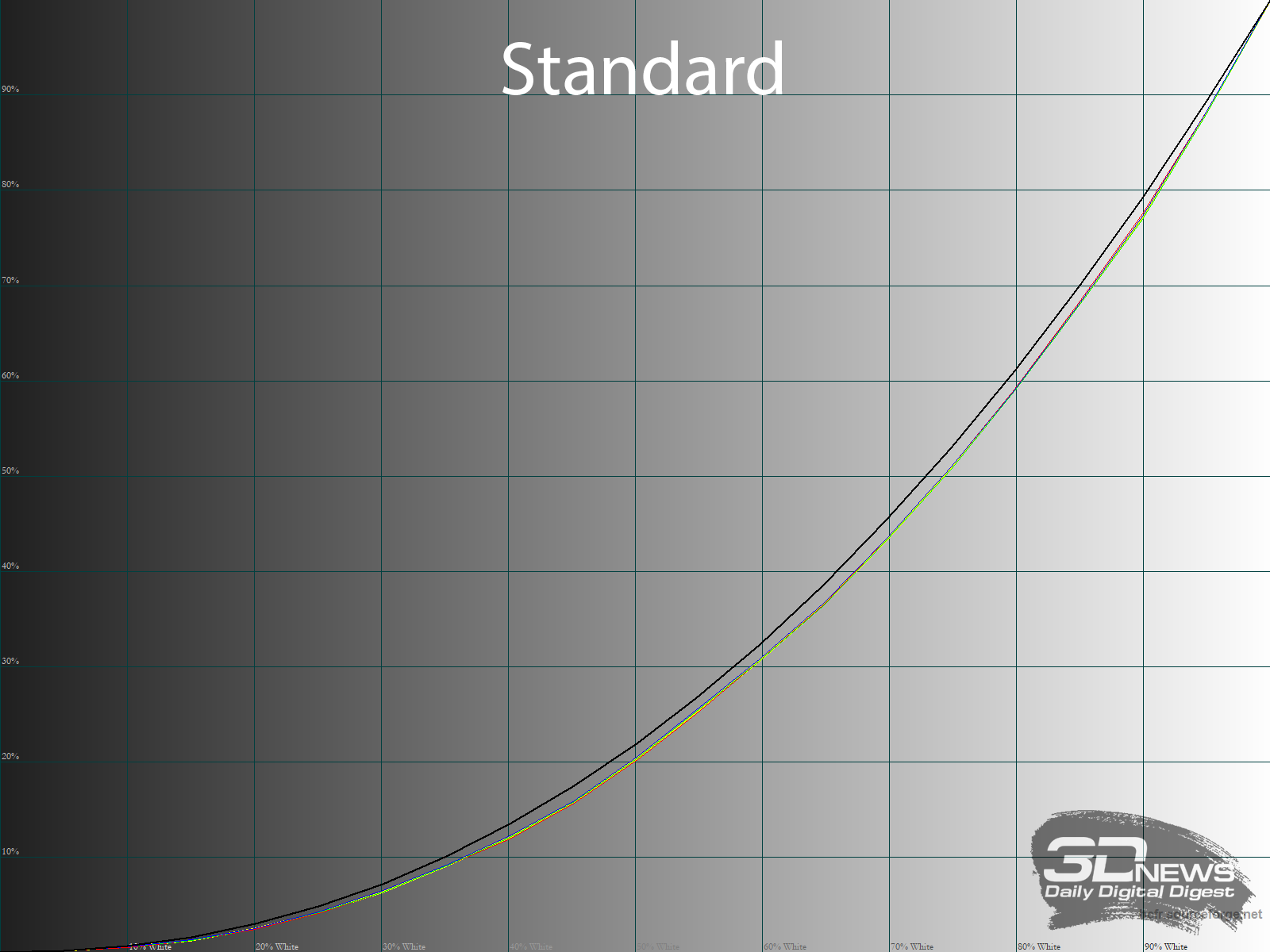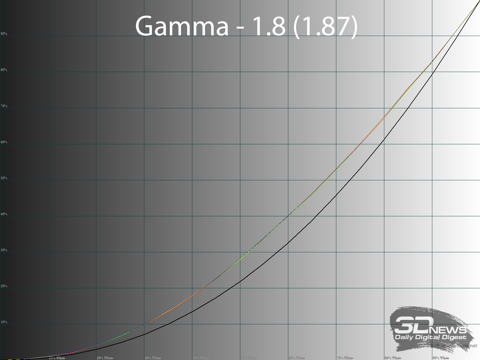 Герой обзора от Titan Army предлагает классические варианты от 1.8 до 2.6 с шагом в 0.2, а также режим S-Сurve. Основные режимы настроены с отклонением от референсов на 0.07-0.17 в большую сторону с минимальным дисбалансом между RGB-каналами. Это низкий результат, особенно учитывая фактическое отсутствие крайних тёмных полутонов в большинстве вариантов.