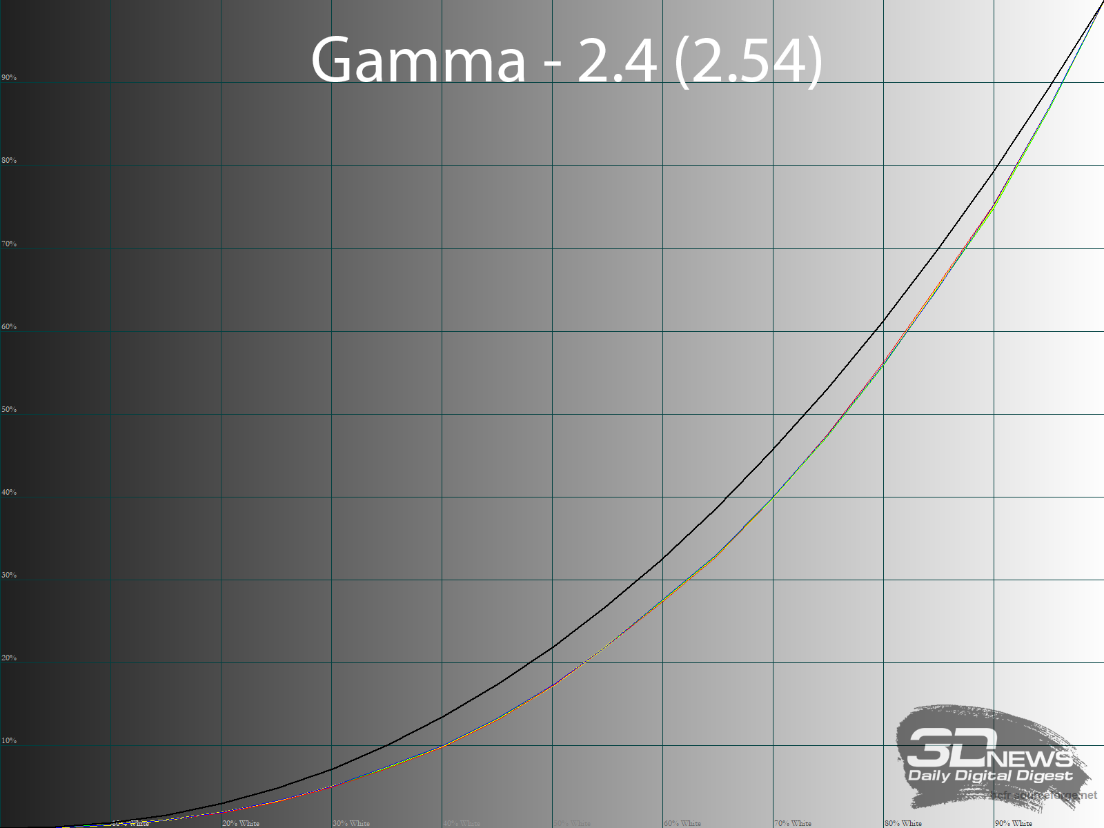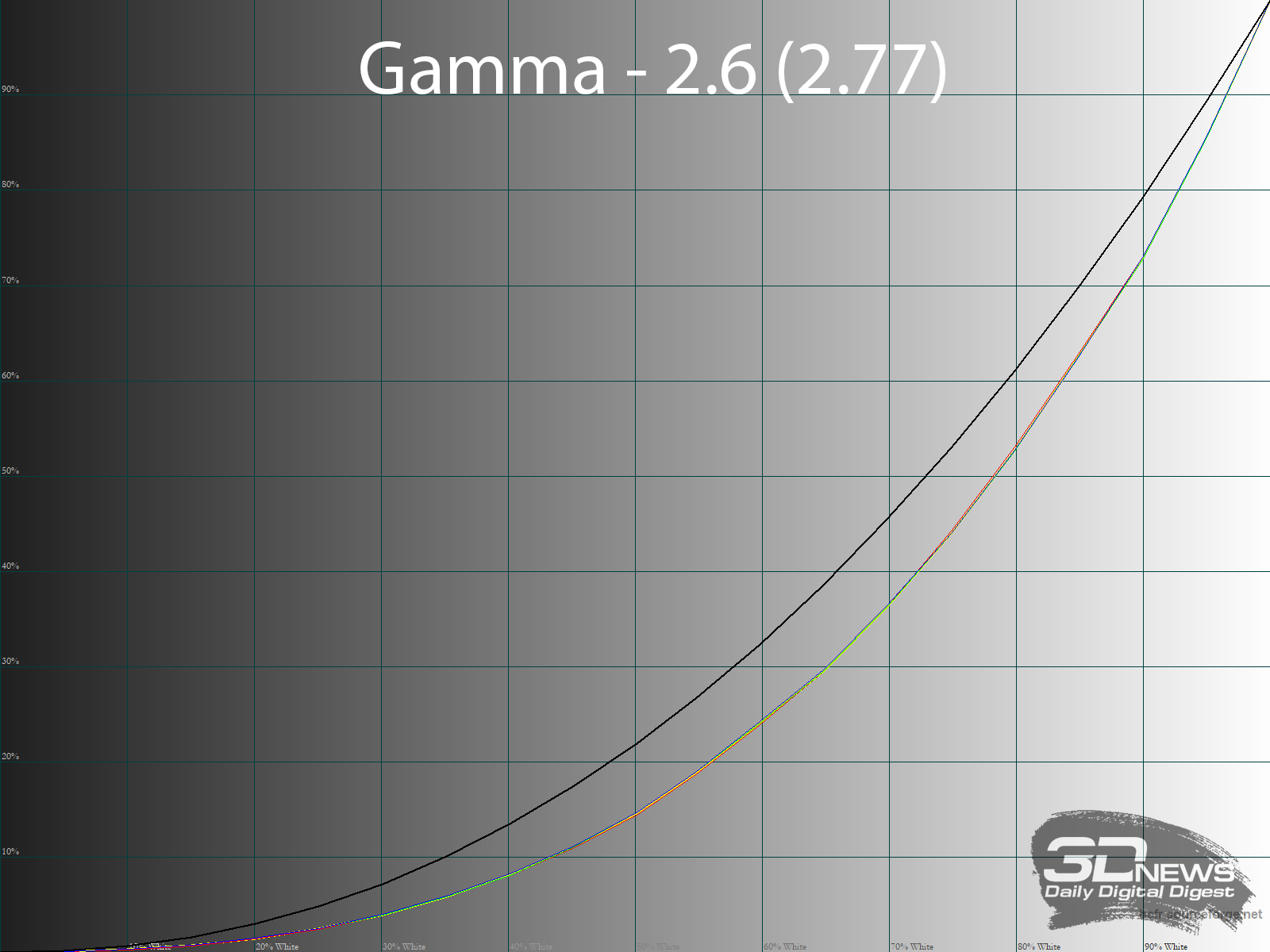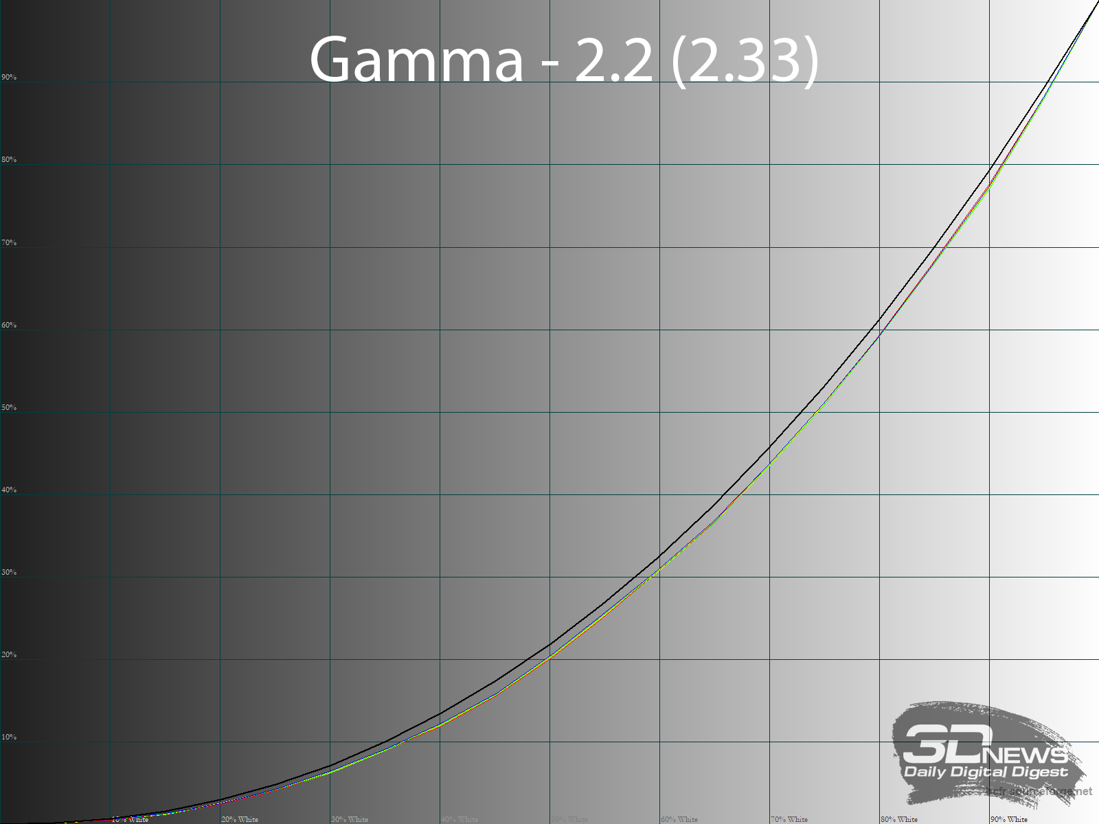 Теперь посмотрим на доступные режимы гаммы. Напомним, что по умолчанию установлено значение 2.2. В скобках на каждой картинке выше указано фактическое среднее значение гаммы, полученное в ходе измерений.