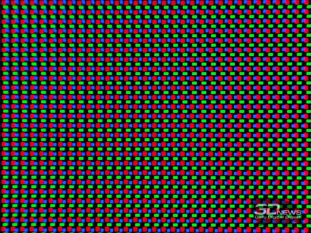 При том что по структуре это по-прежнему RGB, по форме пикселя такая панель далека от большинства знакомых нам LCD-панелей, поэтому ни Windows, ни MacOS, ни Linux не способны работать с ней полноценно. Проблемы с прорисовкой могут встречаться повсеместно. А вот как сильно они будут бросаться в глаза — зависит от расстояния до экрана и остроты вашего зрения.
