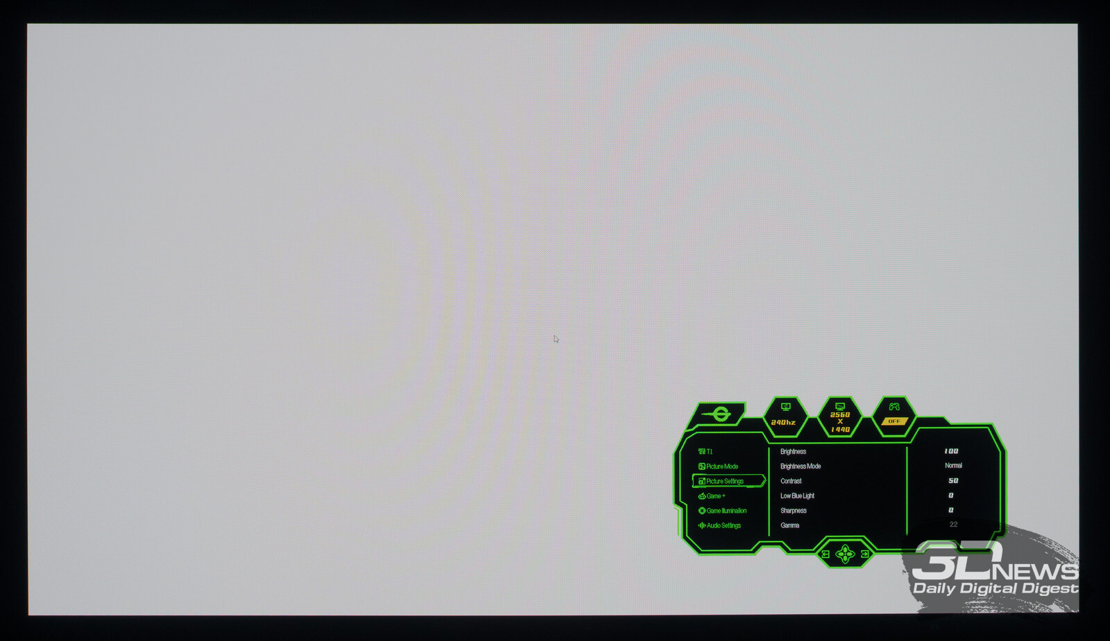 Без профиля проблему различимости глубоких полутонов можно быстро решить с помощью регулировки параметра Shadow в игровом подразделе меню модели, но при определённых значениях параметра вы окажетесь в ситуации, когда способность монитора G2785S к воспроизведению глубоких теней попросту исчезнет. Как лучше – решать только вам.