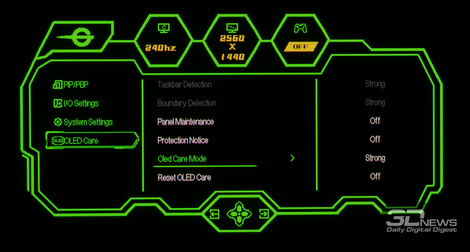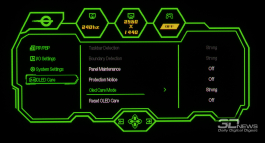 В мониторе G2785S особое внимание уделено защите органических светодиодов от выгорания с помощью программного комплекса OLED Care, в который входит целых 10 функций защиты – каждая с возможностью активации/дезактивации и пользовательской настройки. Для улучшения охлаждения QD-OLED-панели используется графеновая плёнка.