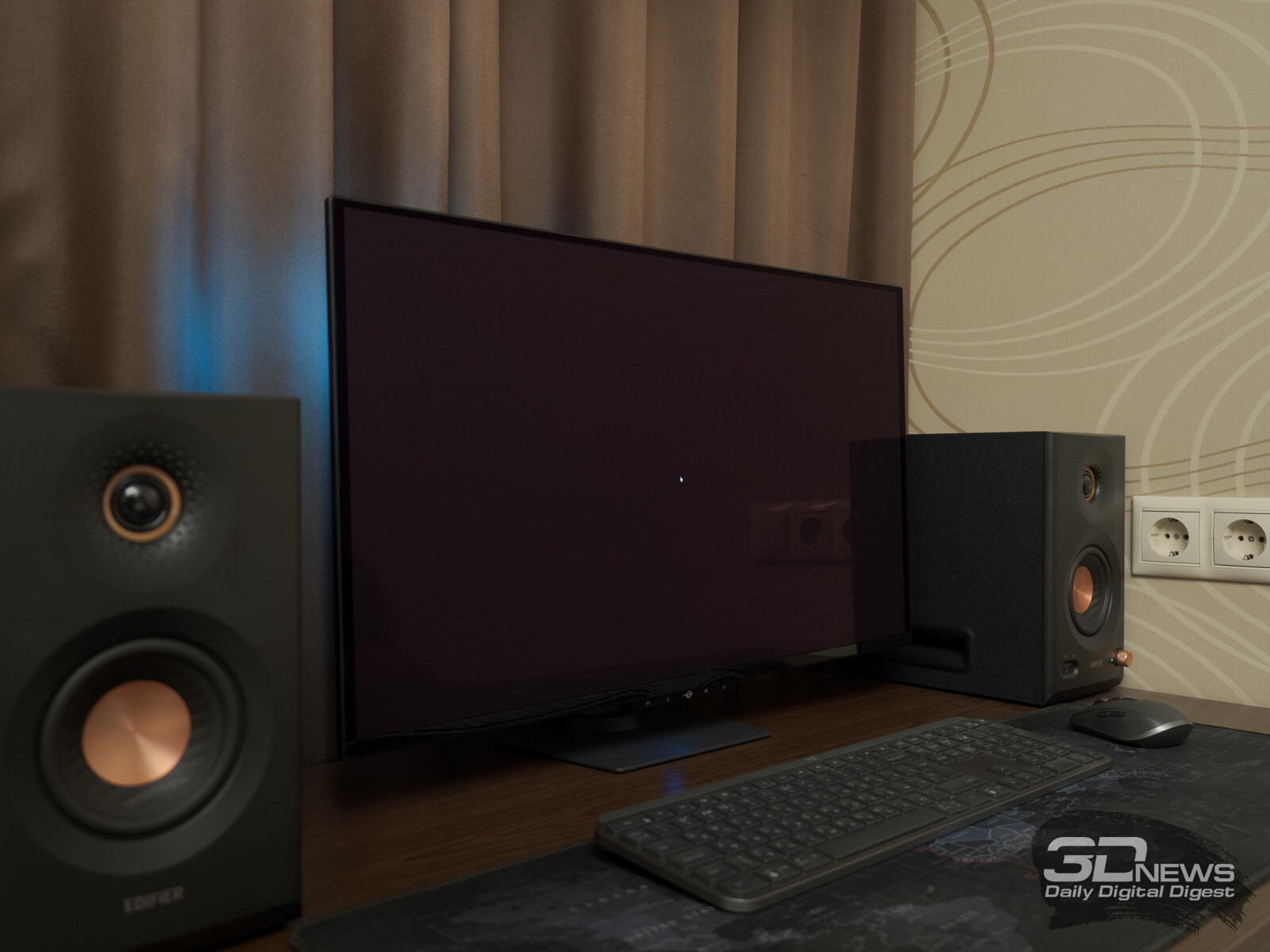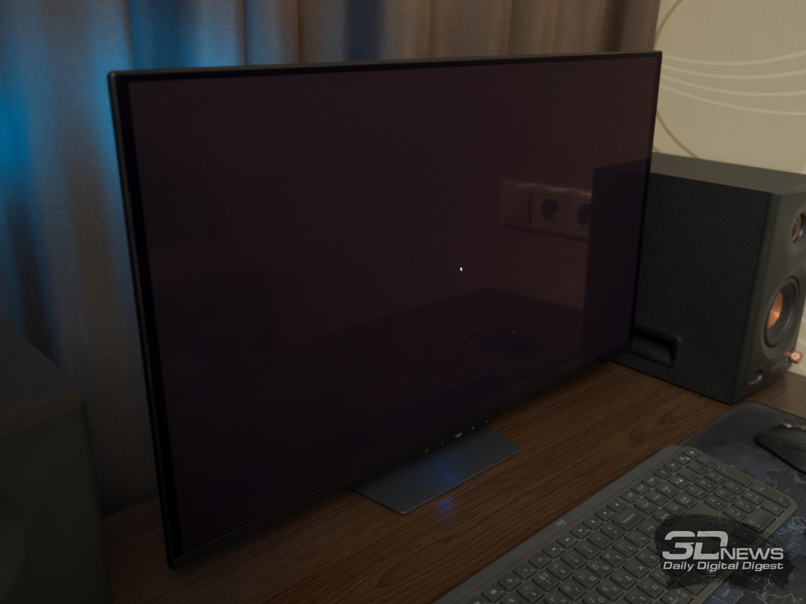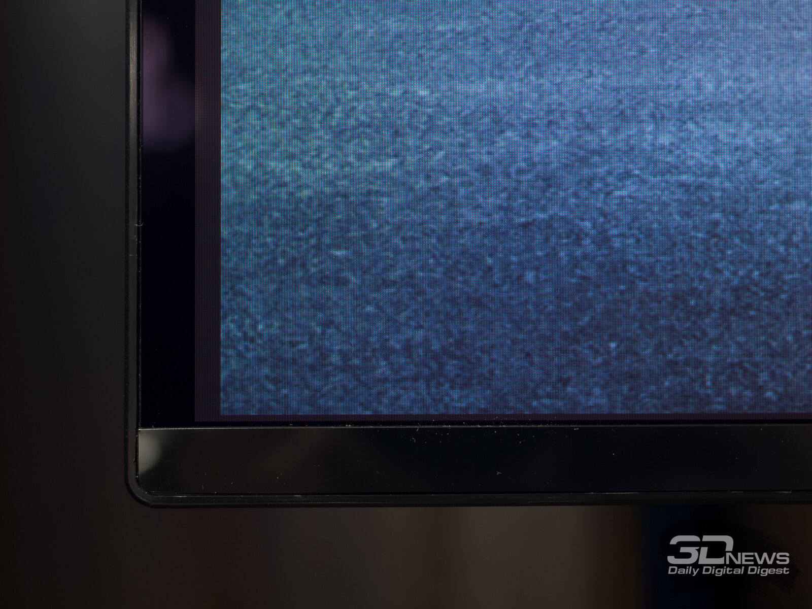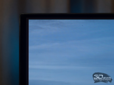 В условиях яркого внешнего освещения, когда свет попадает на экран, воспроизводимый чёрный цвет становится заметно светлее, чем чёрная нерабочая зона матрицы, которая обрамляет экран тонкой, в несколько миллиметров, полосой. Это действительно удивляет, особенно если сталкиваешься с таким эффектом впервые, ожидая увидеть «идеальный чёрный» при любых условиях. К сожалению, в данном случае это ожидание не оправдывается полностью. Черный на QD-OLED будет только в отсутствие внешнего освещения.