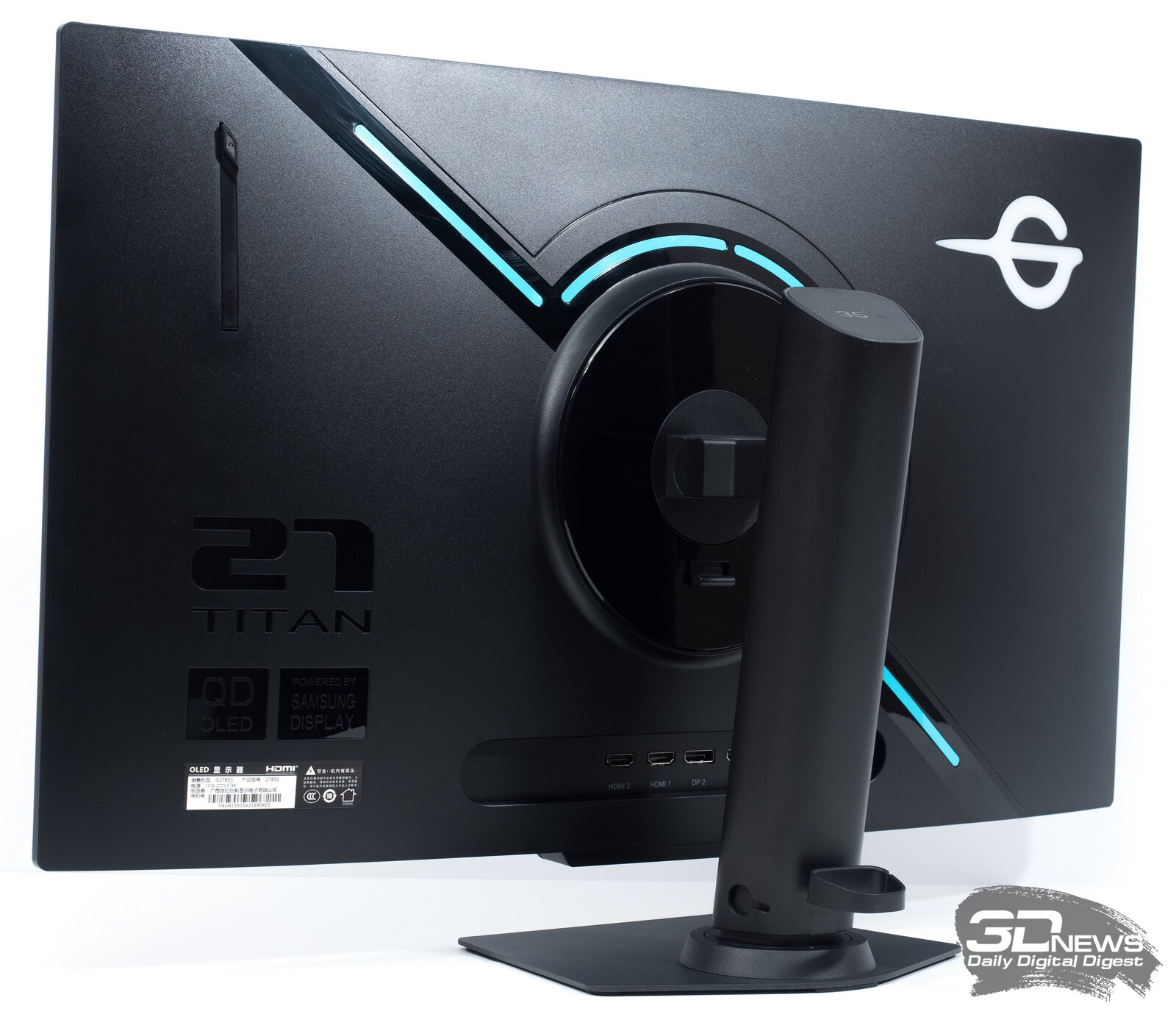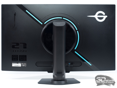 В мониторе Titan Army G2785S реализован целый микс современных решений в мире мониторов. Центральная стойка, как у современных BenQ Zowie, подставка прямиком от новых ASUS и Gigabyte с небольшой доработкой механизма поворота, задняя часть от Samsung или Dell Alienware с некоторым налётом «китайской эстетики».