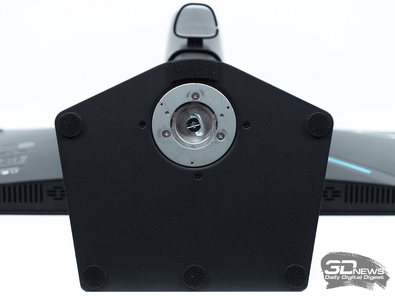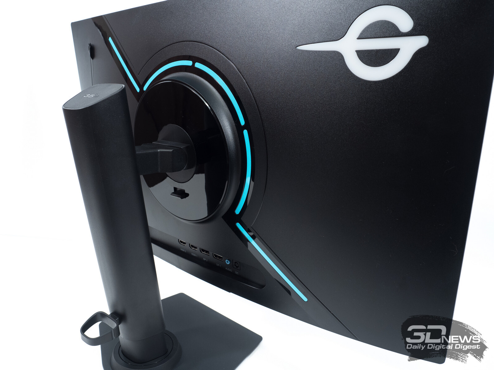 Дисплей представлен в безрамочном дизайне. Используемая подставка обеспечивает широкий диапазон регулировок, а для альтернативного размещения предусмотрено VESA-совместимое крепление 100 × 100 мм, которое не требует переходников. Есть простая система внешней подсветки, интегрированная в логотип бренда на задней панели.