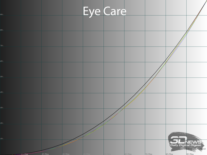 В таком случае вывод по режиму Eye Care очевиден – кроме снижения цветовой температуры и яркости никаких других положительных изменений найдено не было. Использовать режим можно, но большого смысла в этом нет. Яркость вы можете отрегулировать на свой вкус в любом из доступных режимов, да и настройки ЦТ с парой готовых пресетов также представлены в каждом из них.