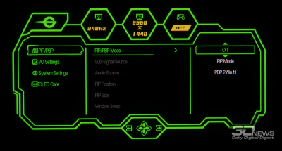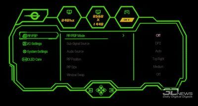 Список интерфейсов у монитора довольно обширен: представлено по два HDMI 2.1 и DP 1.4. По всей вероятности, выбор такого набора сделан с акцентом на доступные функции PiP/PbP для работы с несколькими источниками сигнала.