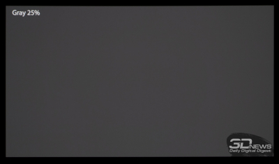 10-битная QD-OLED-матрица смогла продемонстрировать равномерные градиенты в большинстве проверенных режимов. После снижения яркости до низкого/среднего уровня качество градиентов слегка падает, проявляется некоторое количество резких переходов с легкими паразитными оттенками, картинка становится немного «грязной» — с мелким шумом в глубоких тенях, который будет заметен, только если сильно вглядываться в экран на близком расстоянии.