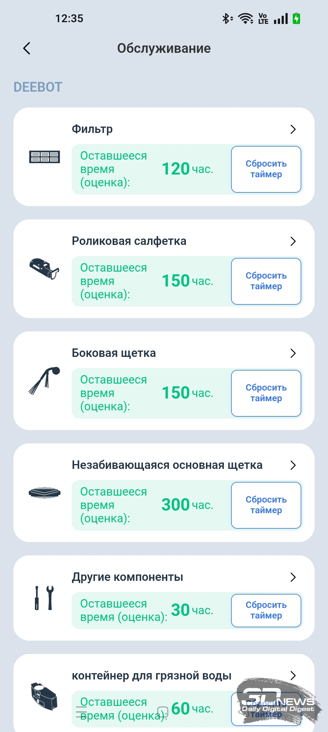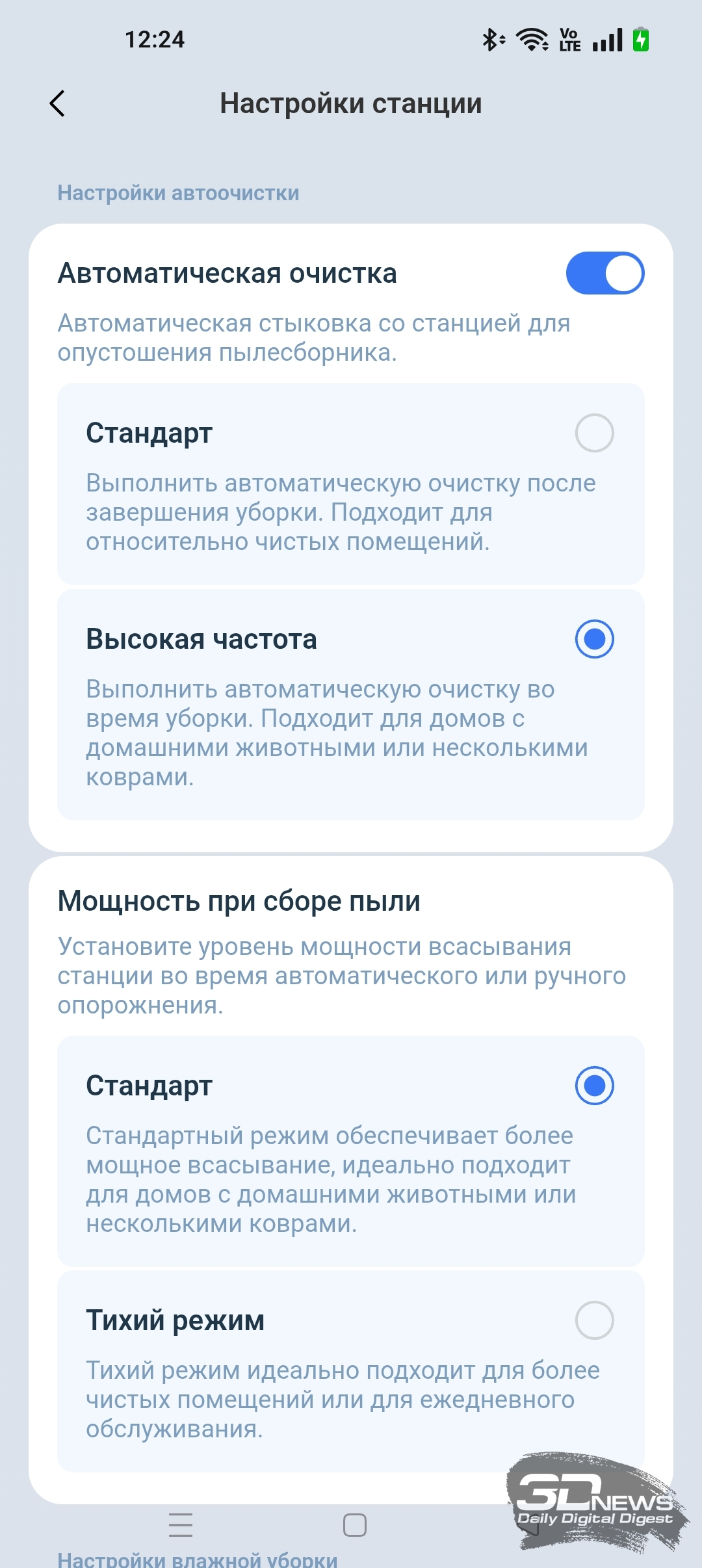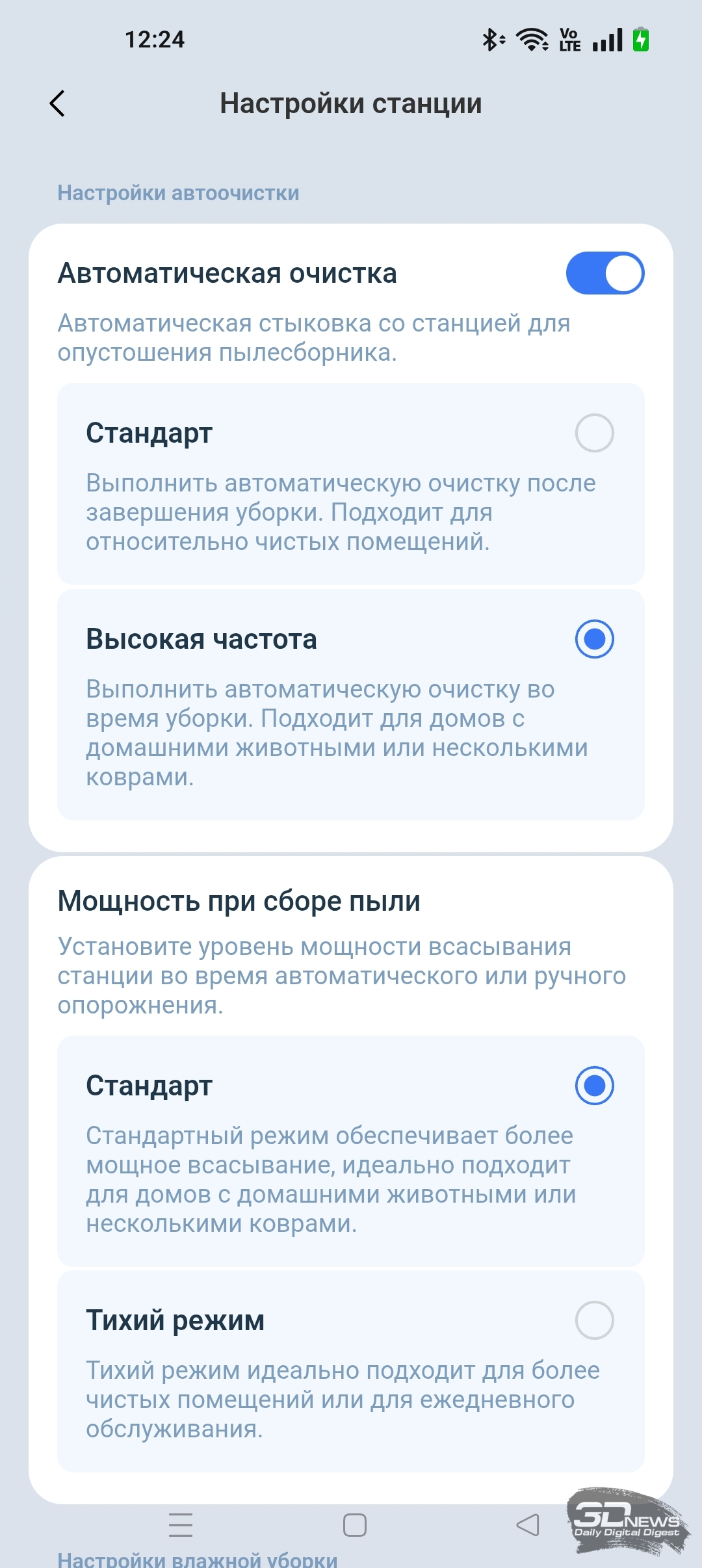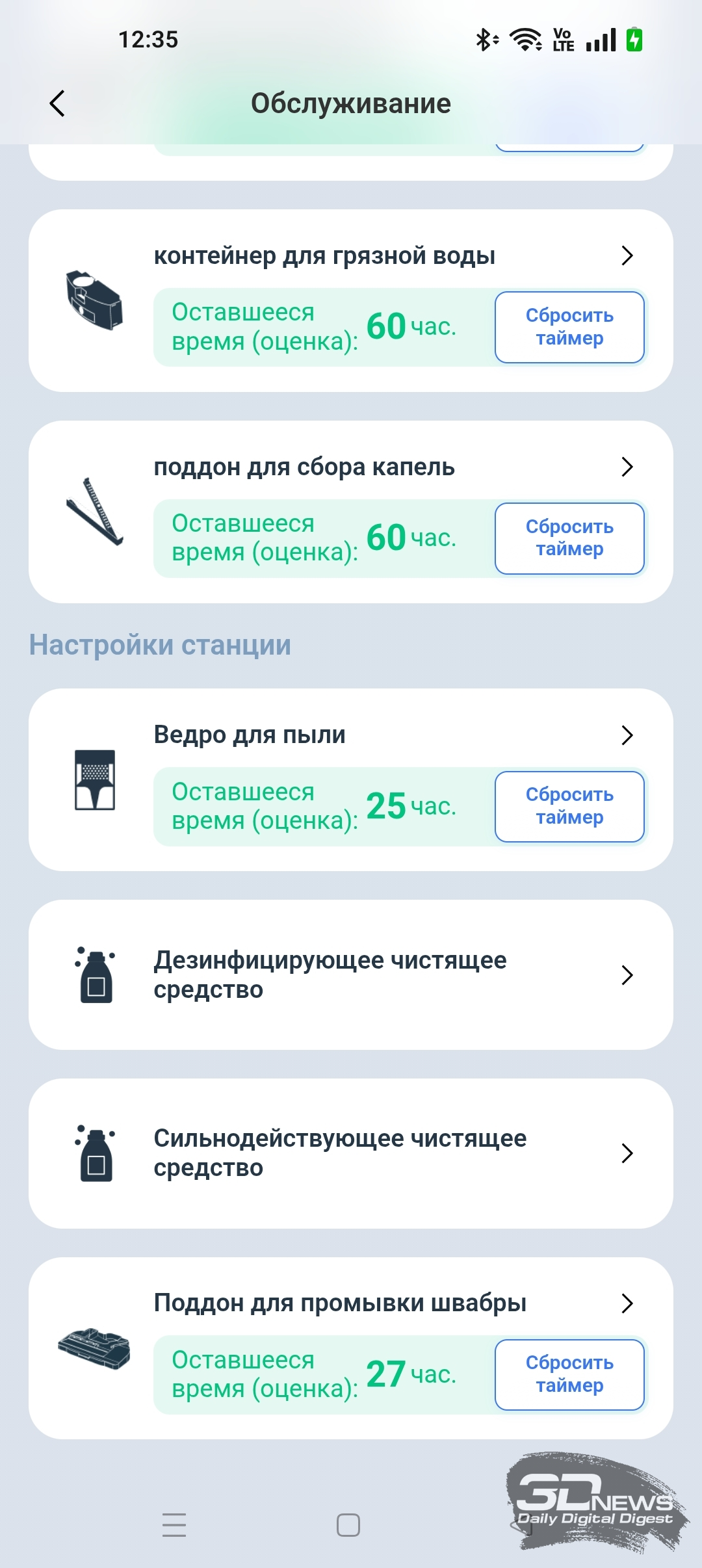 • сушка швабры (длительность этой процедуры настраивается в мобильном приложении — 2, 3 или 4 часа).