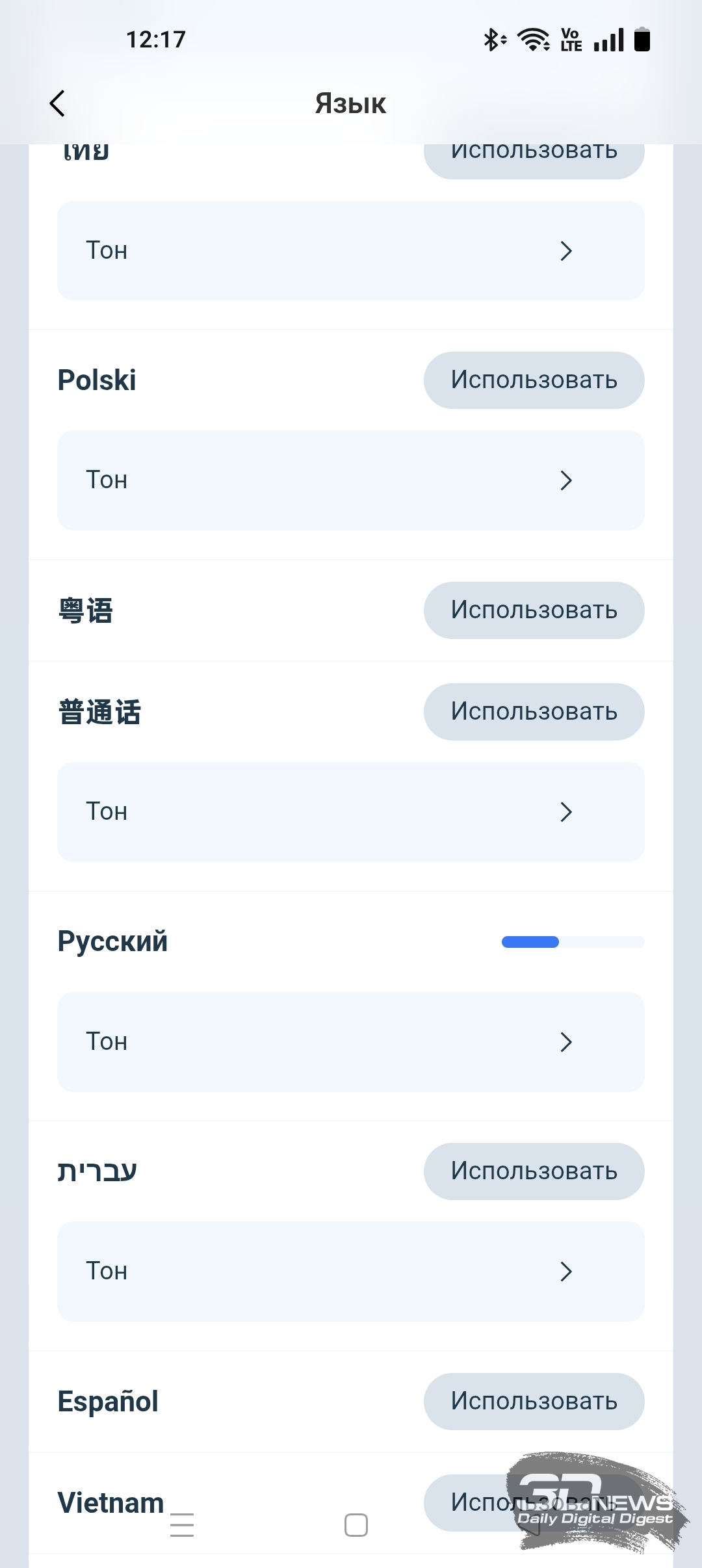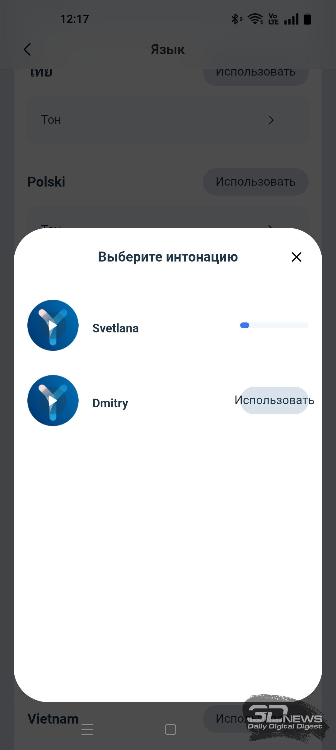 • выбрать язык приложения и голосовых комментариев;