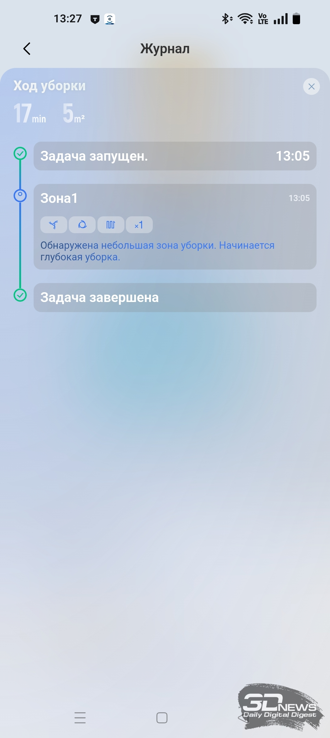 • посмотреть историю уборок;