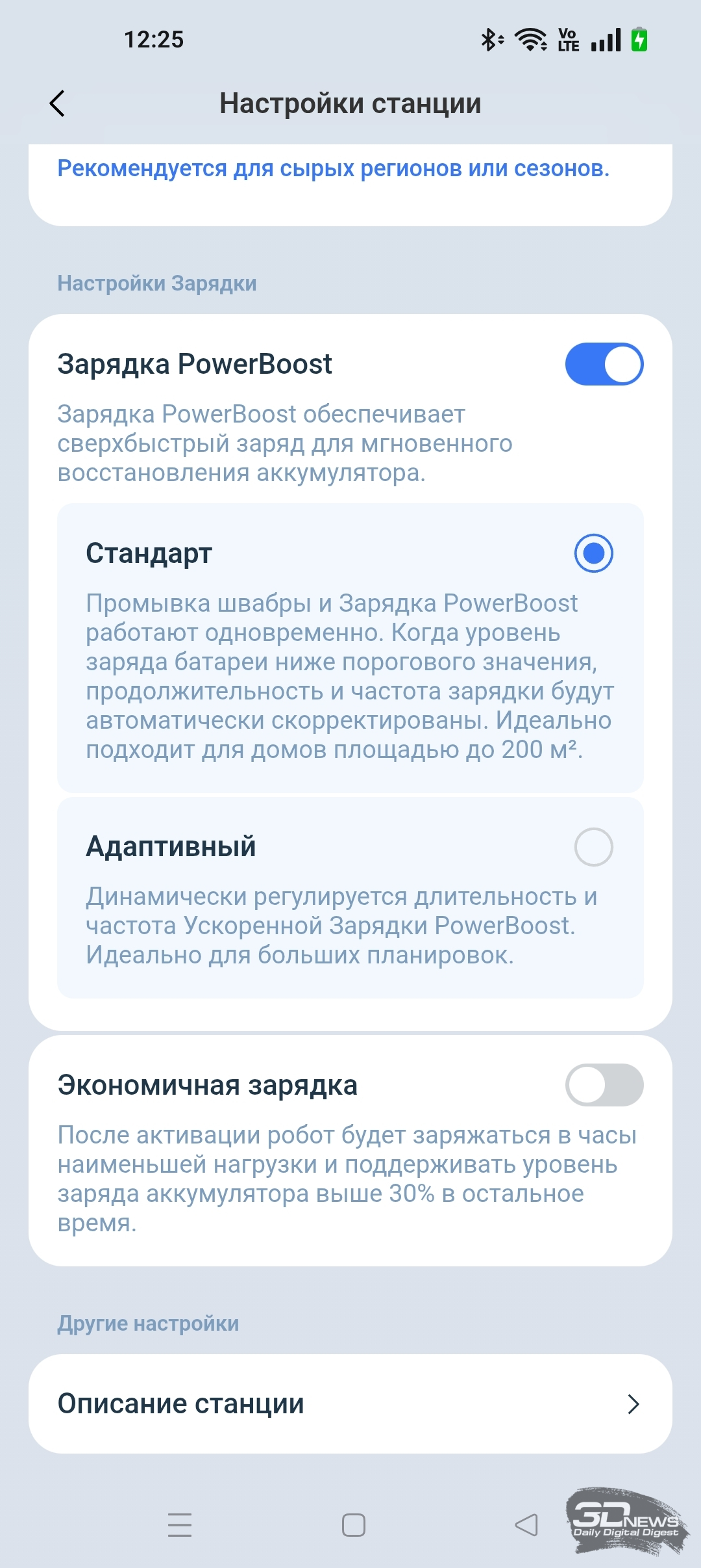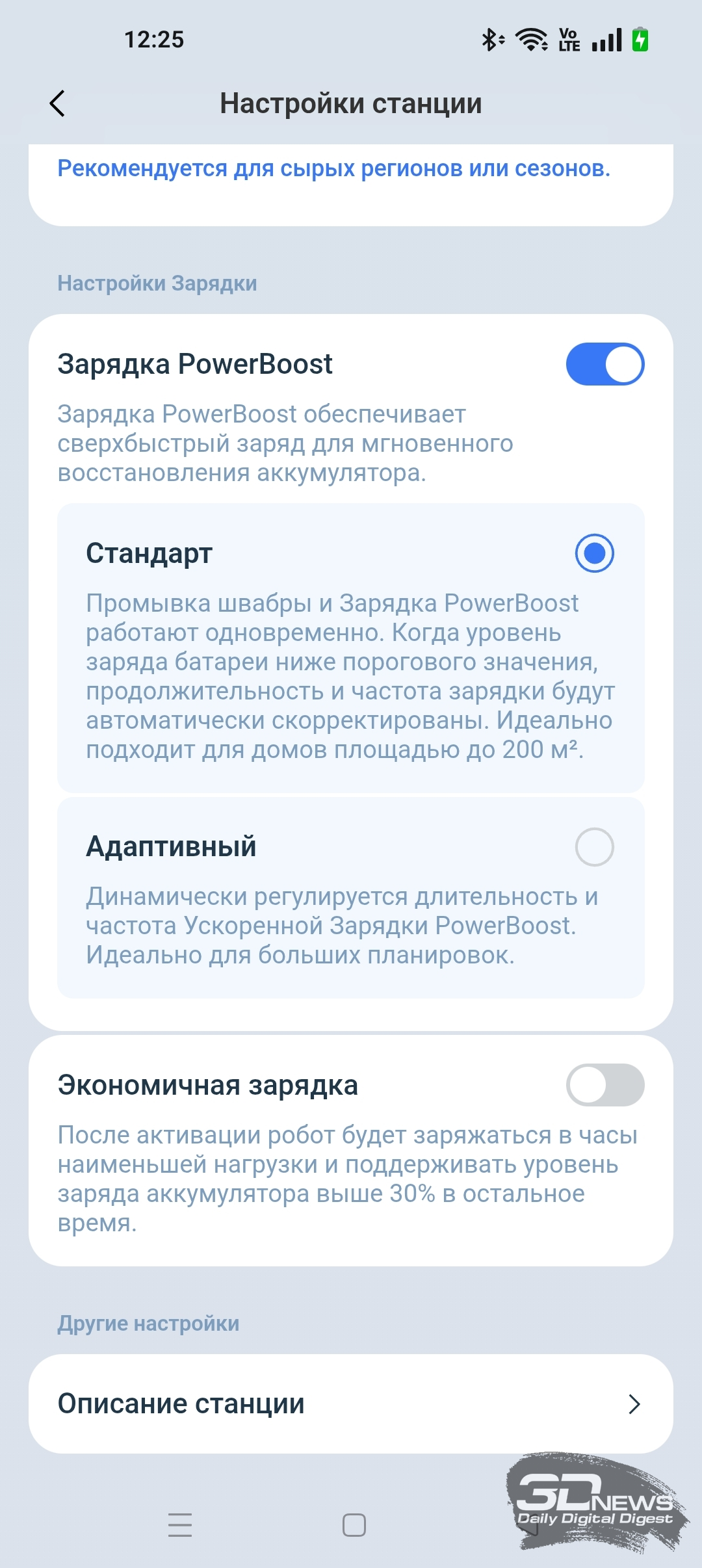 • настроить технологию зарядки робота PowerBoost;