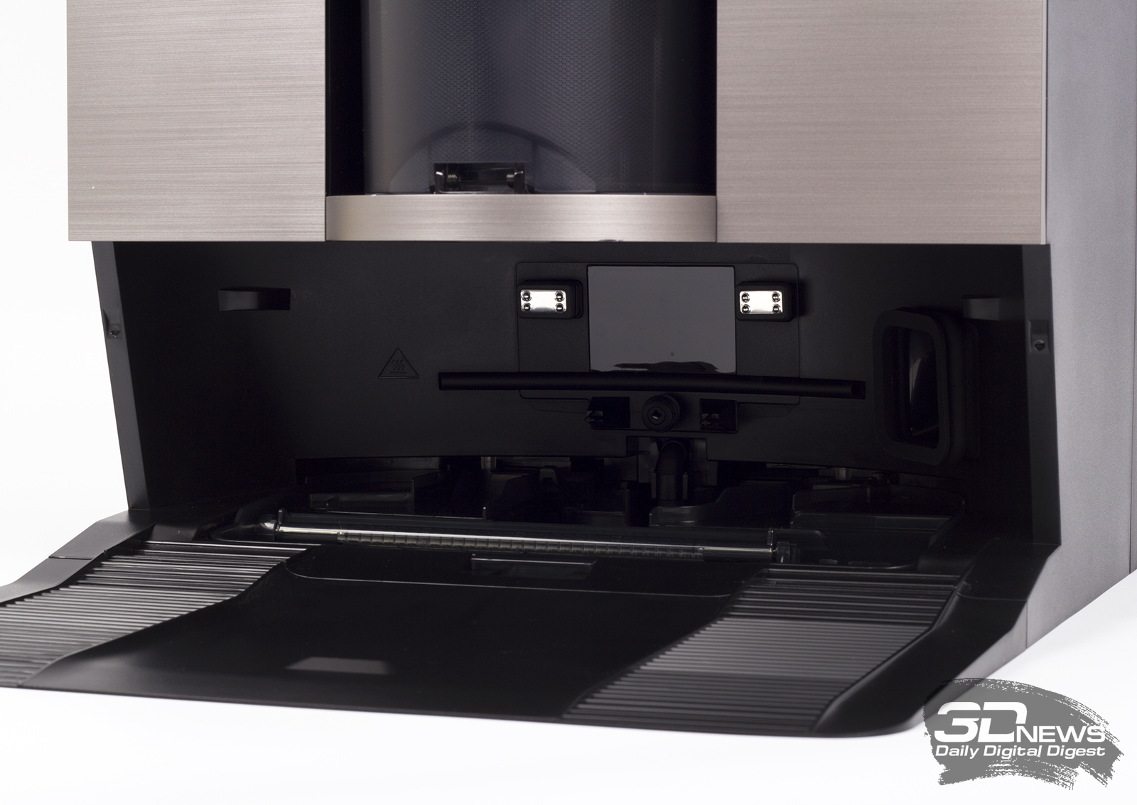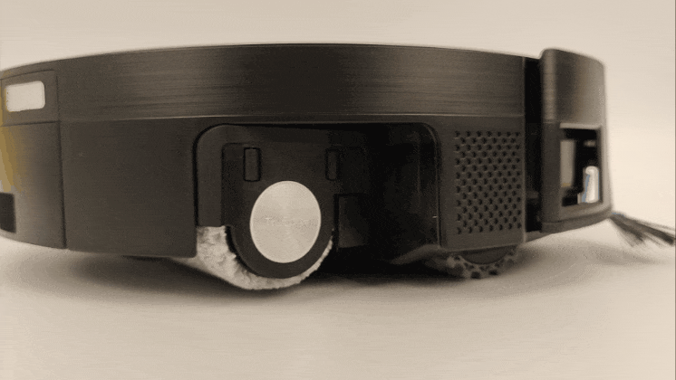 Расходные детали «Дибота» легко снимаются, обслуживаются и при необходимости заменяются. Так, для того, чтобы извлечь роликовую швабру OZMO Roller 2.0, необходимо два раза нажать на сенсорную кнопку включения — тогда ее держатель опустится и выдвинется ближе к пользователю так, как показано на картинке выше. Эта же функция доступна в мобильном приложении. Процедура смотрится очень «по-гиковски».