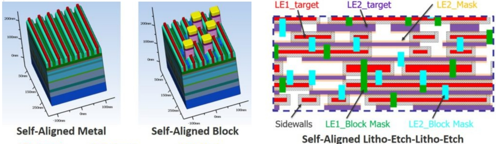 В толще сформированной методом DSA структуры могут возникать — и, увы, на практике действительно возникают — разнообразные дефекты, обнаружить которые не так-то просто (источник: NIST) Ещё одна, уже не столь очевидная, загвоздка с DSA, возникает на этапе исследования и верификации полученной с использованием этого метода заготовки. Блоксополимеры, даром что физические свойства их компонентов (поверхностная энергия) различаются кардинально, формируют крайне малоконтрастные для внешнего наблюдателя поверхности, что неимоверно затрудняет их метрологические исследования. Стандартный инструментарий для дефектоскопирования полупроводников — просвечивающая электронная микроскопия, дифракция рентгеновских лучей — не позволяет эффективно различать границы между компонентами диблоксполимерного сэндвича в его объёме, что грозит некорректной оценкой работоспособности полученных таким образом микросхем. Ведь слоистая структура растёт в трёх измерениях, и даже если на поверхности наблюдается строго упорядоченное чередование полос равной ширины, в толще слоя вполне возможно отклонение от вертикали (когда в сечении выходит не прямоугольник, а клин), не говоря уже об опасности появления разрывов, — и на физических свойствах сформированного таким образом полупроводника то и другое, бесспорно, скажется. Так или иначе, период выхода DSA из лабораторий в производственные цеха, судя по всему, надолго не затянется. Интерес к этой технологии ещё в 2024 г. начала проявлять сама Intel — вскоре после того, как выяснилось, что у спешно закупленных ею новейших и запредельно дорогих фотолитографов High-NA EUV (380 млн долл. США за штучку, будьте добры; нет, переводы через СБП не принимаем) себестоимость обработки заготовки за один проход выше, чем у EUV-машины первого поколения, работающей в два прохода. И хотя с техпроцессом «18A» у американского чипмейкера действительно не слишком задалось, перспективный «14A» потенциальных заказчиков очень даже впечатлил — не в последнюю очередь, видимо, потому, что его органичной частью как раз и стал фирменный вариант направляемой самосборки, SALELE (Self-Aligned Litho-Etch Litho-Etch). О нём Intel объявила в начале 2024 г., на мероприятии SPIE Advanced Lithography & Patterning: именно в комбинации с DSA-выправлением не слишком аккуратных, надо полагать, линий, формируемых при экспонировании заготовки высокоэнергичными EUV-фотонами, удаётся формировать на подложке элементы полупроводниковых устройств на расстоянии 18-21 нм один от другого.
