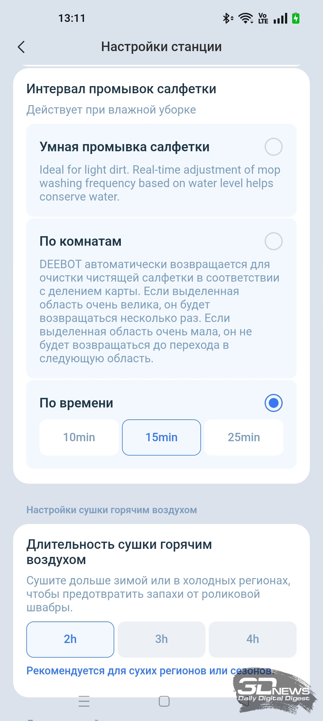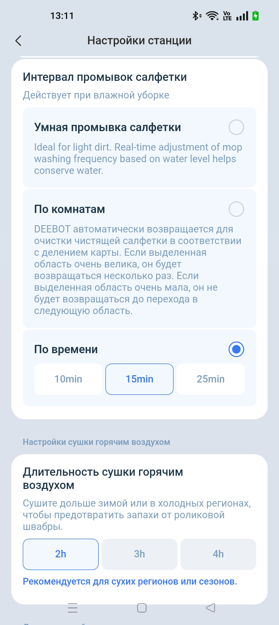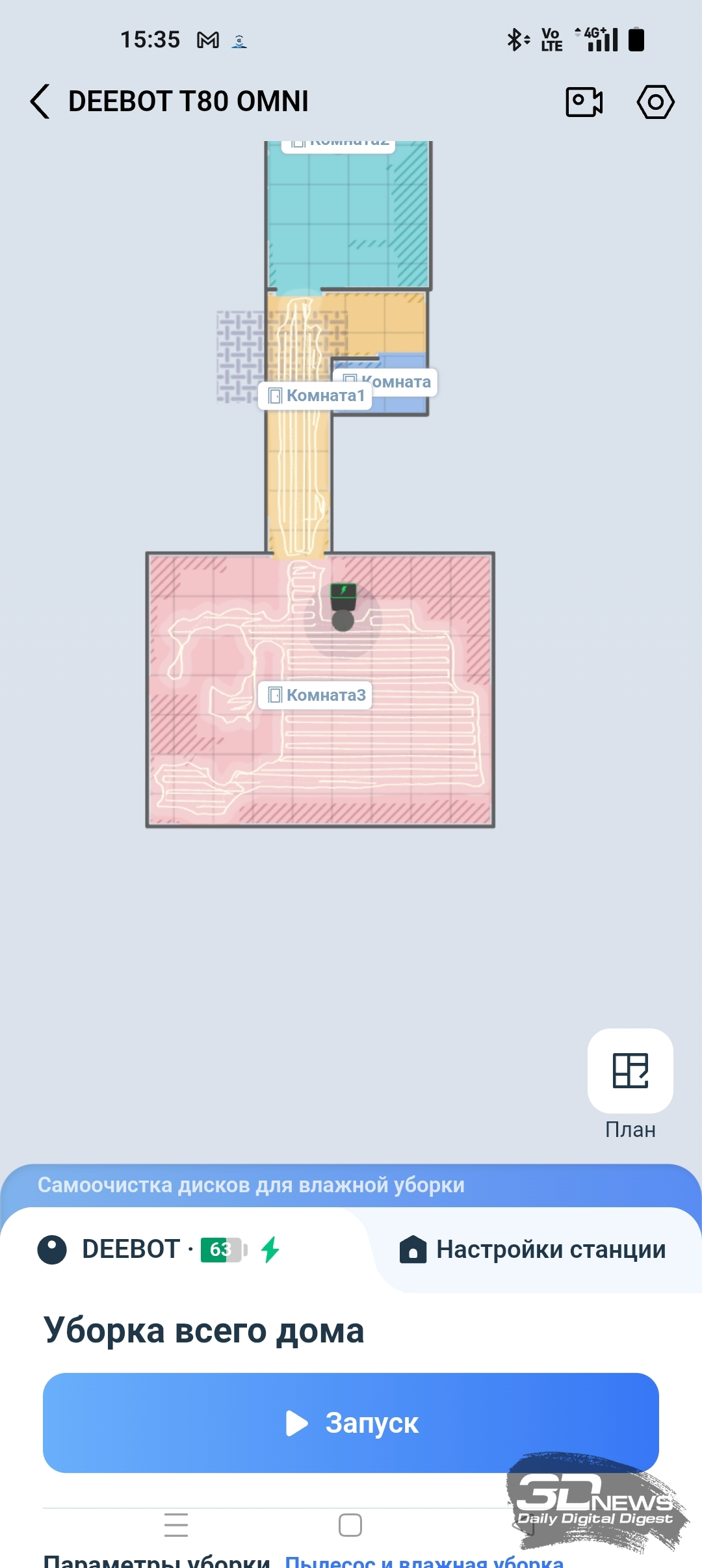 Уборка 18 м2 заняла у героя обзора 25 минут — использовался комбинированный режим «Стандарт» с обычной скоростью мойки пола и влажностью 30. За это время DEEBOT T80 OMNI потратил 13 % заряда аккумулятора.