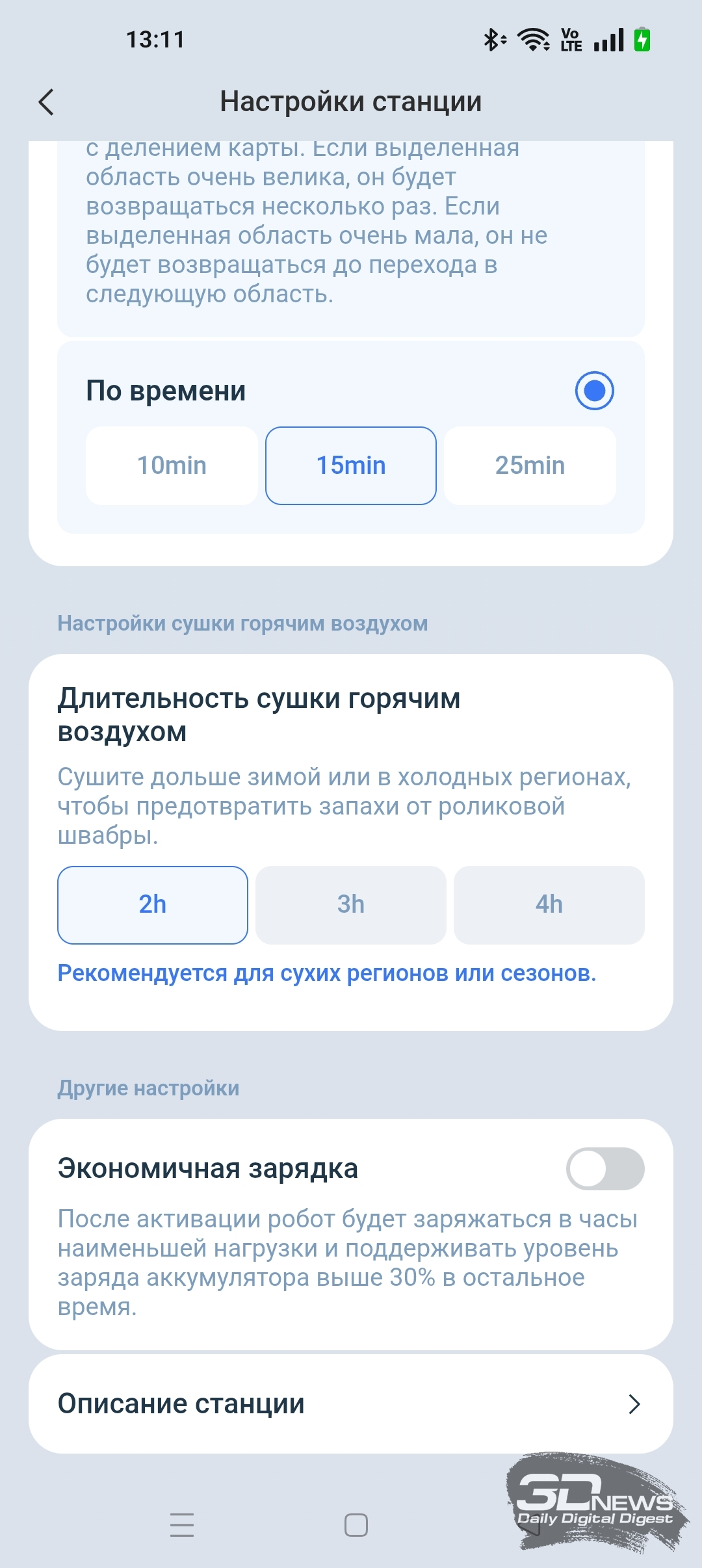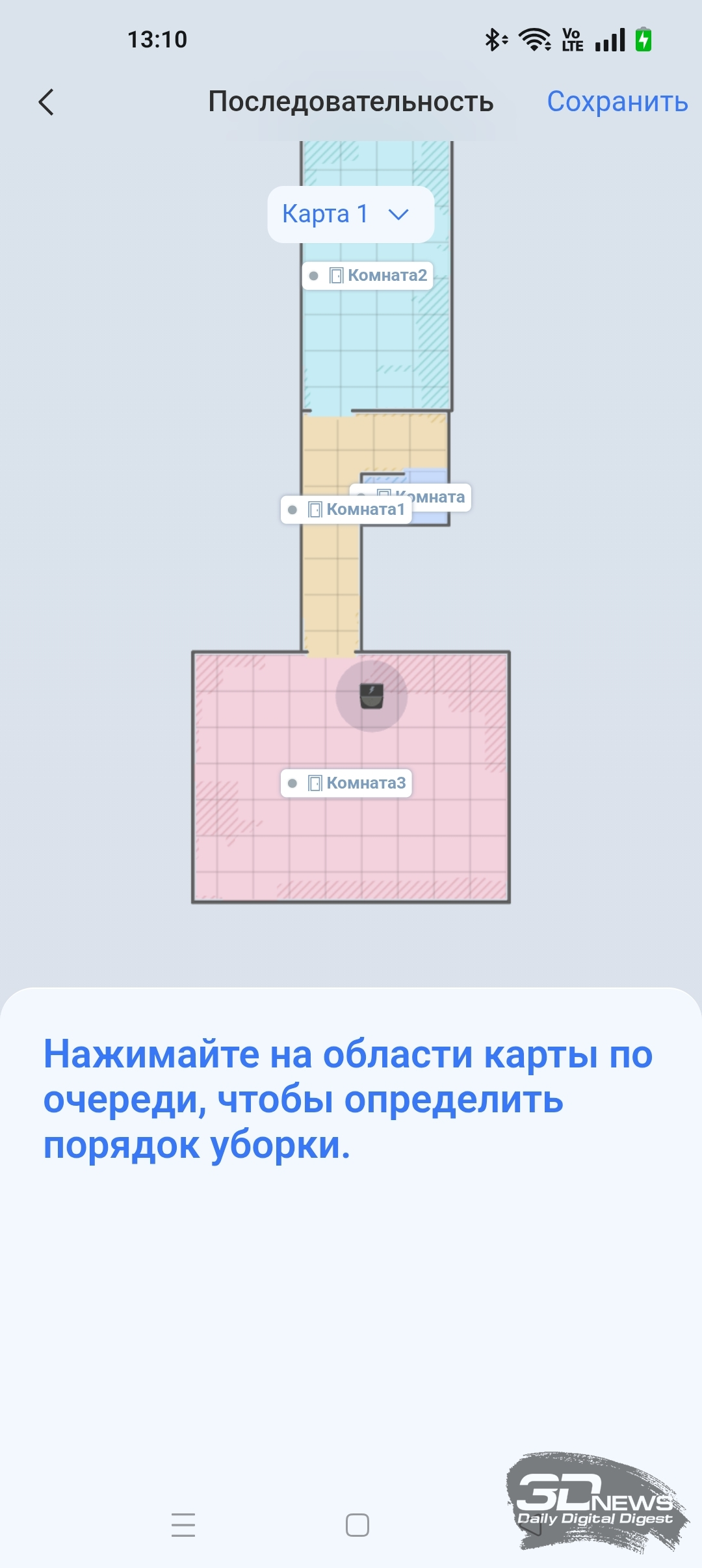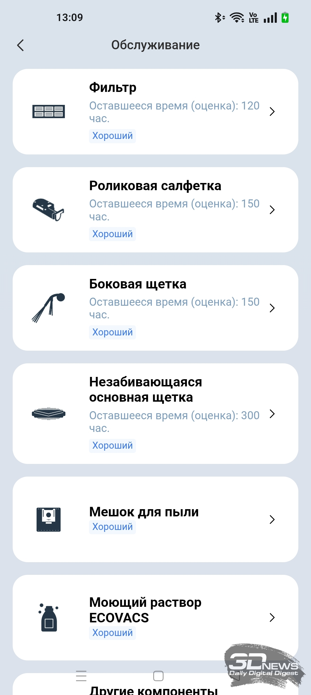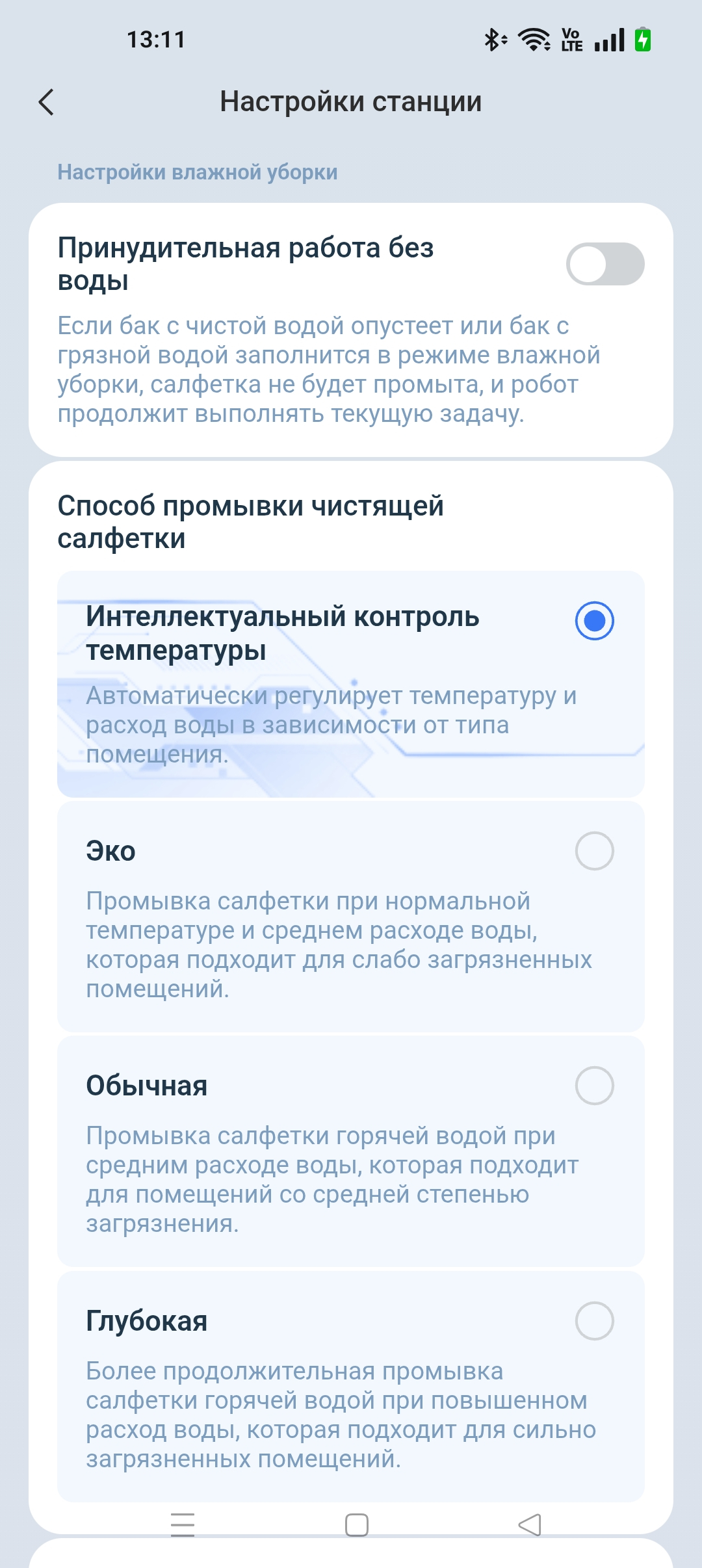 Уборка 18 м2 заняла у героя обзора 25 минут — использовался комбинированный режим «Стандарт» с обычной скоростью мойки пола и влажностью 30. За это время DEEBOT T80 OMNI потратил 13 % заряда аккумулятора.