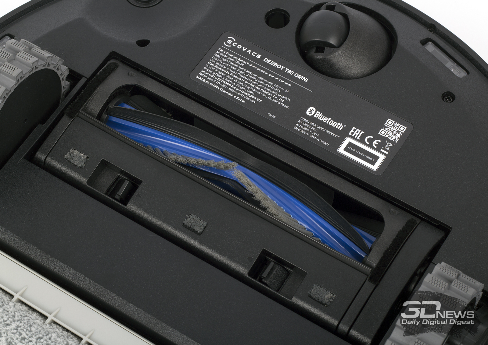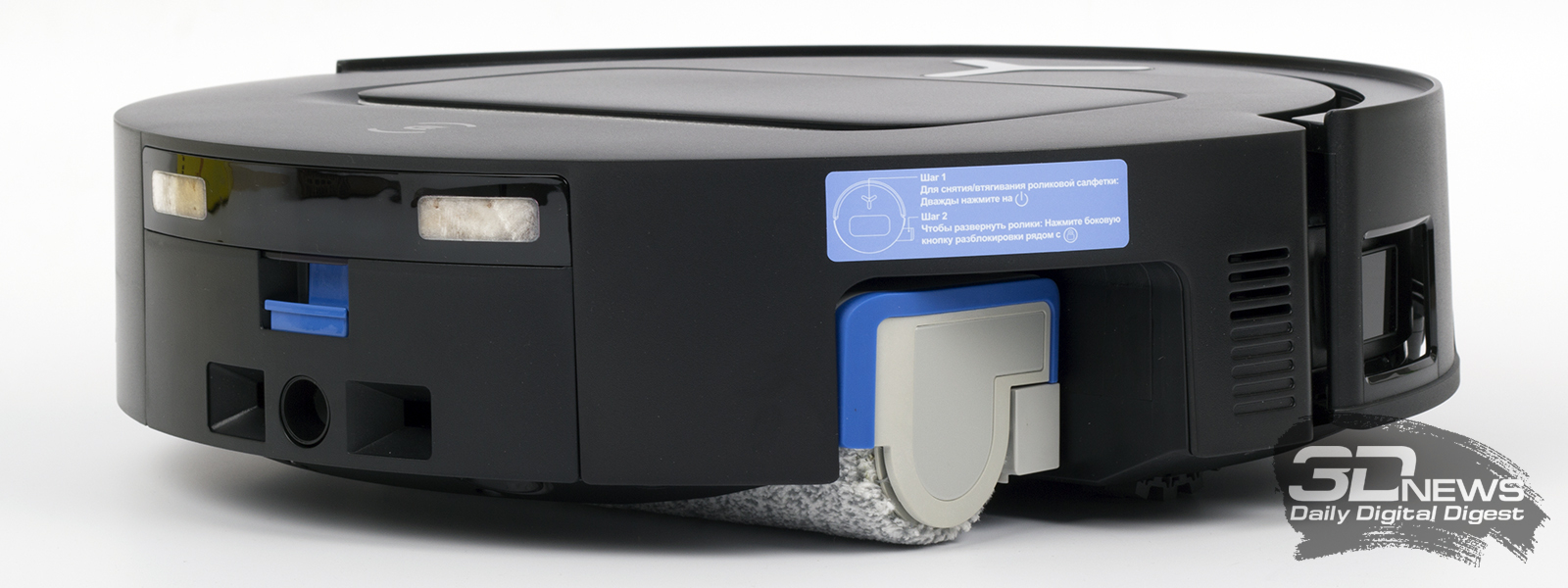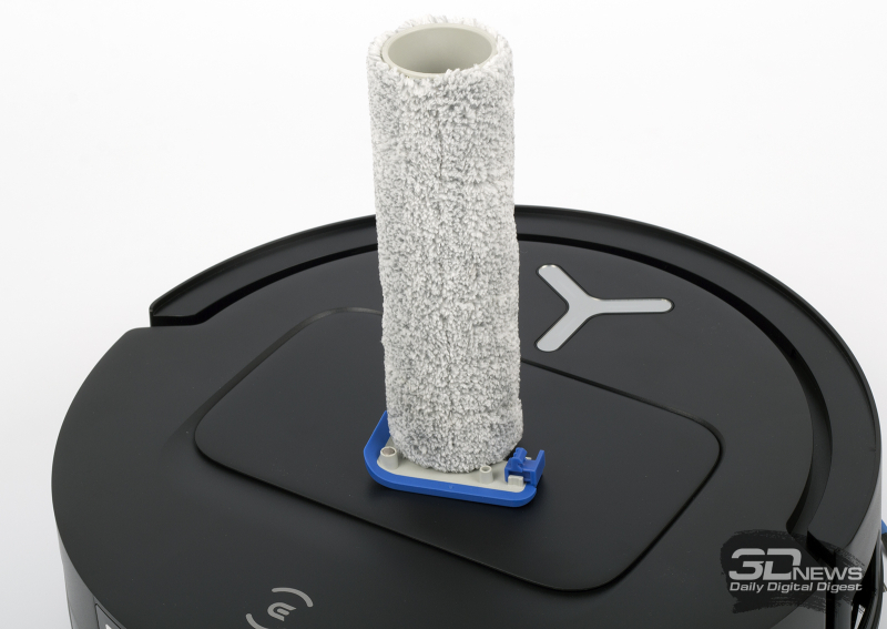 Стоит лишь перевернуть уборщик вверх тормашками, в глаза сразу же бросится роликовая швабра OZMO Roller. Во время уборки она вращается с частотой 200 оборотов в минуту и с давлением 3700 Па. По данным ECOVACS, это значение в 16 раз выше, чем у роботов, оснащенных плоскими вибрирующими швабрами. Кроме того, нейлоновый валик выдвигается вбок для максимально тщательной уборки краев. Вместе с сенсорным алгоритмом робота и его 3D-датчиком вся технология получила название TruEdge 2.0.