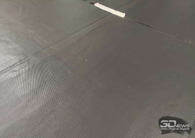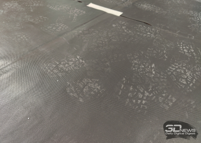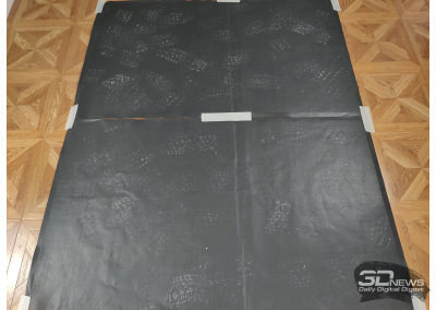 DEEBOT T80 OMNI хорошо помыл пол. После влажной уборки замечены небольшие разводы на поверхности перевернутого ковра — это связано с тем, что роликовый валик OZMO Roller уборщика постоянно цеплялся за край и заворачивал его. На полностью ровной поверхности такого, ясное дело, не будет. Влажная уборка проводилась в режиме по умолчанию.