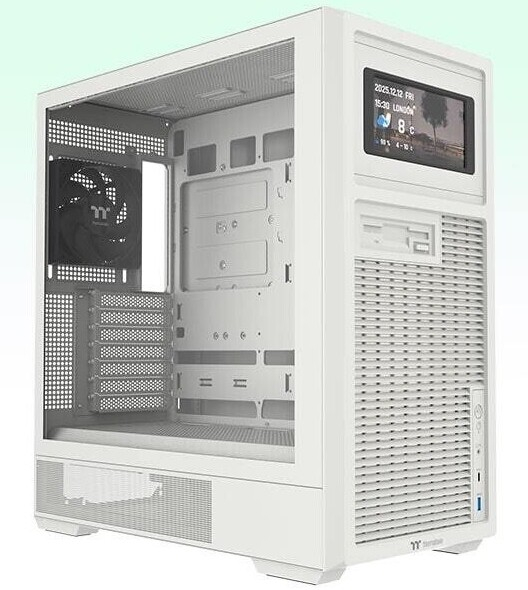 Корпус Retro 260 TG ориентирован на компактные сборки на базе microATX. Он напоминает классические ПК прошлого благодаря минималистичному дизайну, но технически рассчитан на современные конфигурации и поддерживает материнские платы с разъёмами на задней панели, установку до девяти 120-мм вентиляторов и радиатора СЖО типоразмера до 280 мм, размещаемого сверху. В передней части корпуса расположены порт USB 3.2 Gen 2 Type-C, два порта USB 3.0 и аудиоразъём HD Audio для качественной передачи звука. Корпус также поддерживает установку 6-дюймового ЖК-экрана Thermaltake, подходящего для отображения пиксельной графики, системной информации или пользовательской анимации.