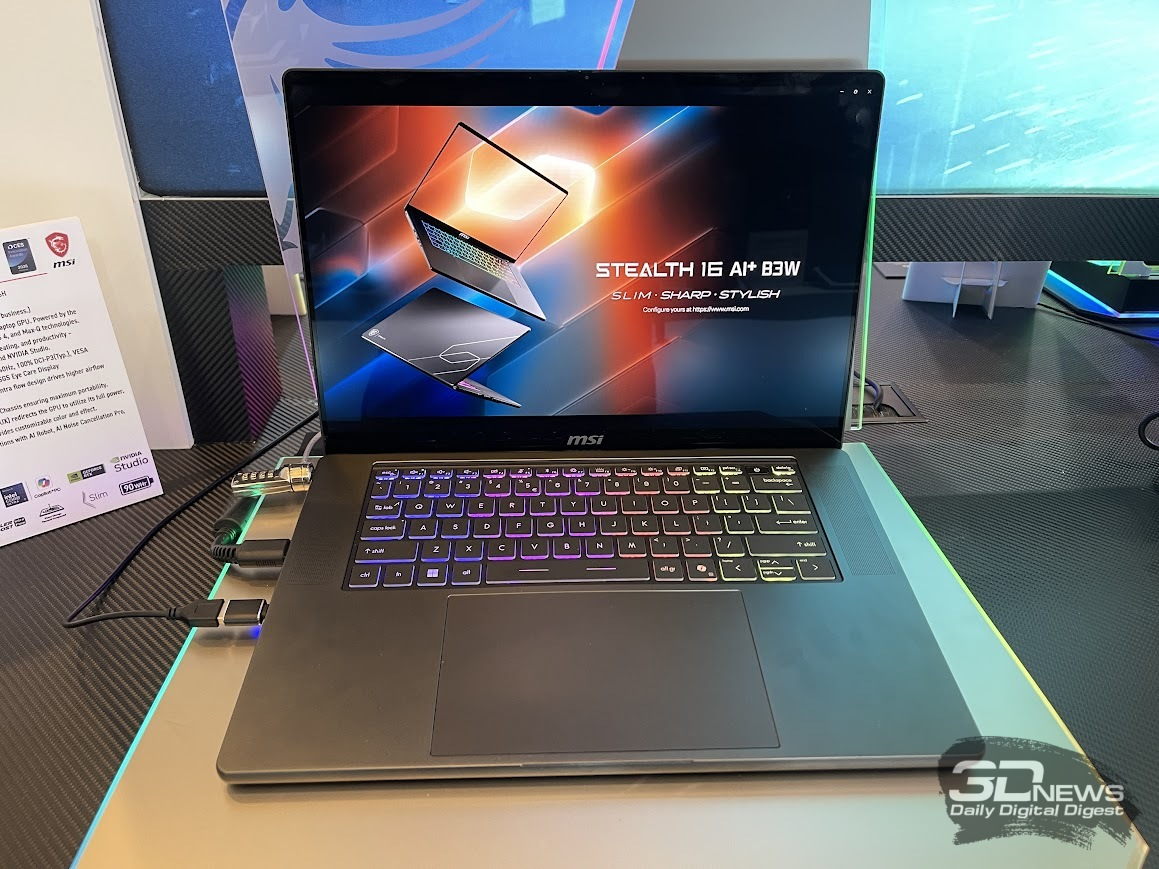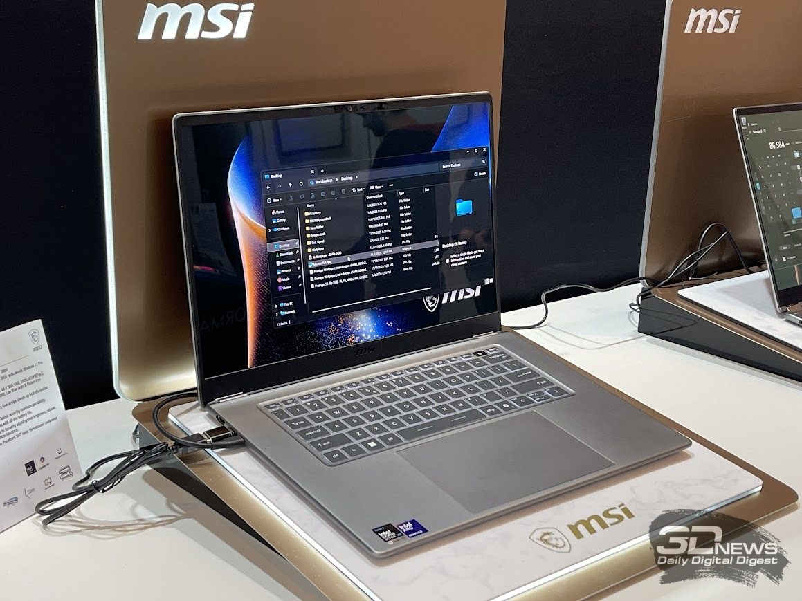 Ноутбуки оснащаются до 64 Гбайт оперативной памяти LPDDR5x и твердотельными накопителями PCIe 4.0. Экран здесь тоже продвинутый — OLED: у старшей версии заявлена 2,8K-панель (2880 × 1800 пикселей) с VRR в диапазоне 48–120 Гц и 100-% охватом цветового пространства DCI-P3, а также пониженным уровнем синего излучения и отсутствием мерцания. Впечатляет и автономность: батарея на 81 Вт·ч обеспечивает до 30 часов воспроизведения видео (по данным MSI), а быстрая зарядка Power Delivery позволяет восполнить 50 % заряда всего за полчаса.