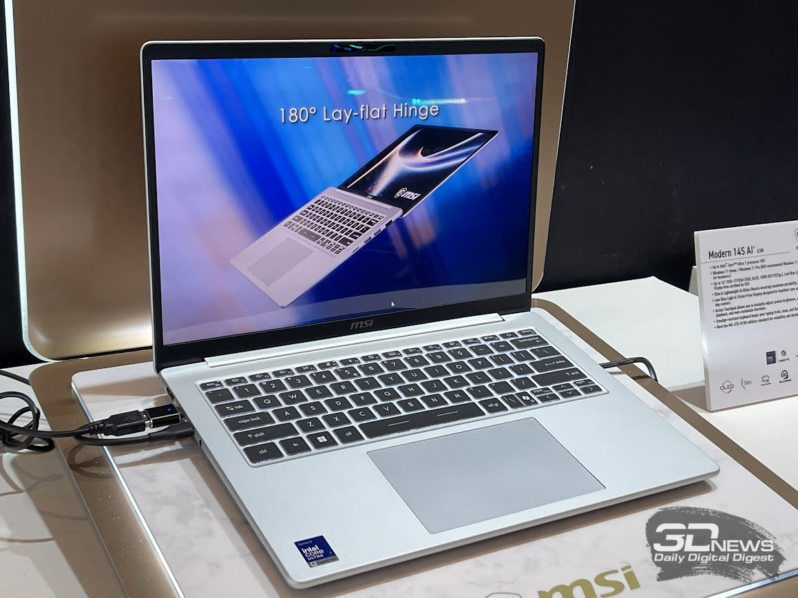 Ноутбуки Modern 14S AI+ и Modern 16S AI+ созданы для повседневных задач и массового сегмента, но по уровню материалов и оснащения вплотную приближены к бизнес-классу. Здесь используются процессоры вплоть до Intel Core Ultra 7 355, предусмотрены два слота DDR5 (до 32 Гбайт), накопитель PCIe 4.0, IPS-матрицы FHD+ (1920 × 1200 пикселей) с частотой до 120 Гц или опциональный OLED. Батарея — 60 Вт·ч с быстрой зарядкой, а по мобильности MSI обещает тонкий корпус (от 11,1 мм) и массу порядка 1,5 кг у 14-дюймовой версии. Есть всё необходимое для работы и повседневного использования: Wi-Fi 6E, Ethernet, microSD, HDMI 2.1, двойной USB-C (Power Delivery и видео), TPM 2.0 и ИК-камера с шторкой. Эти ноутбуки предлагают узнаваемый дизайн, быструю работу и достойную автономность при доступной цене.