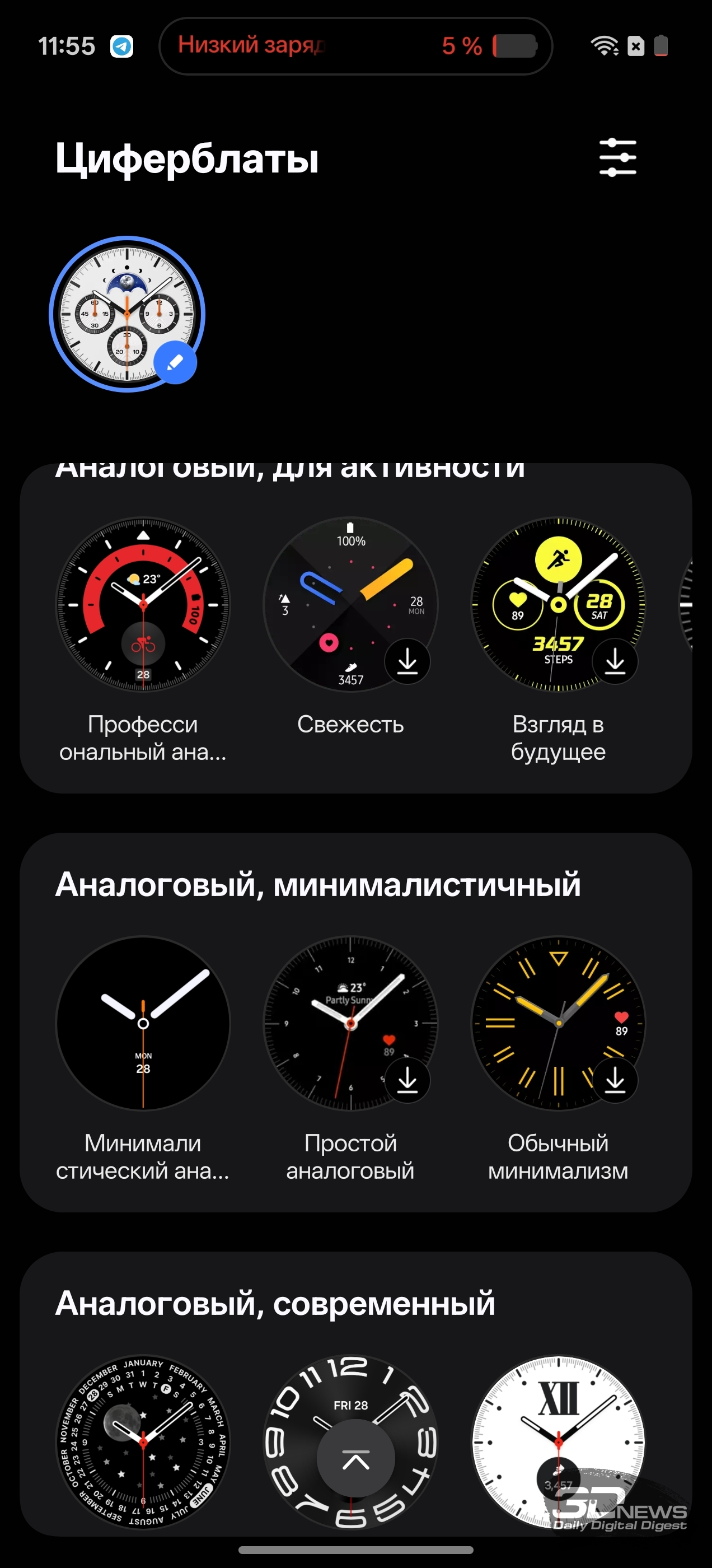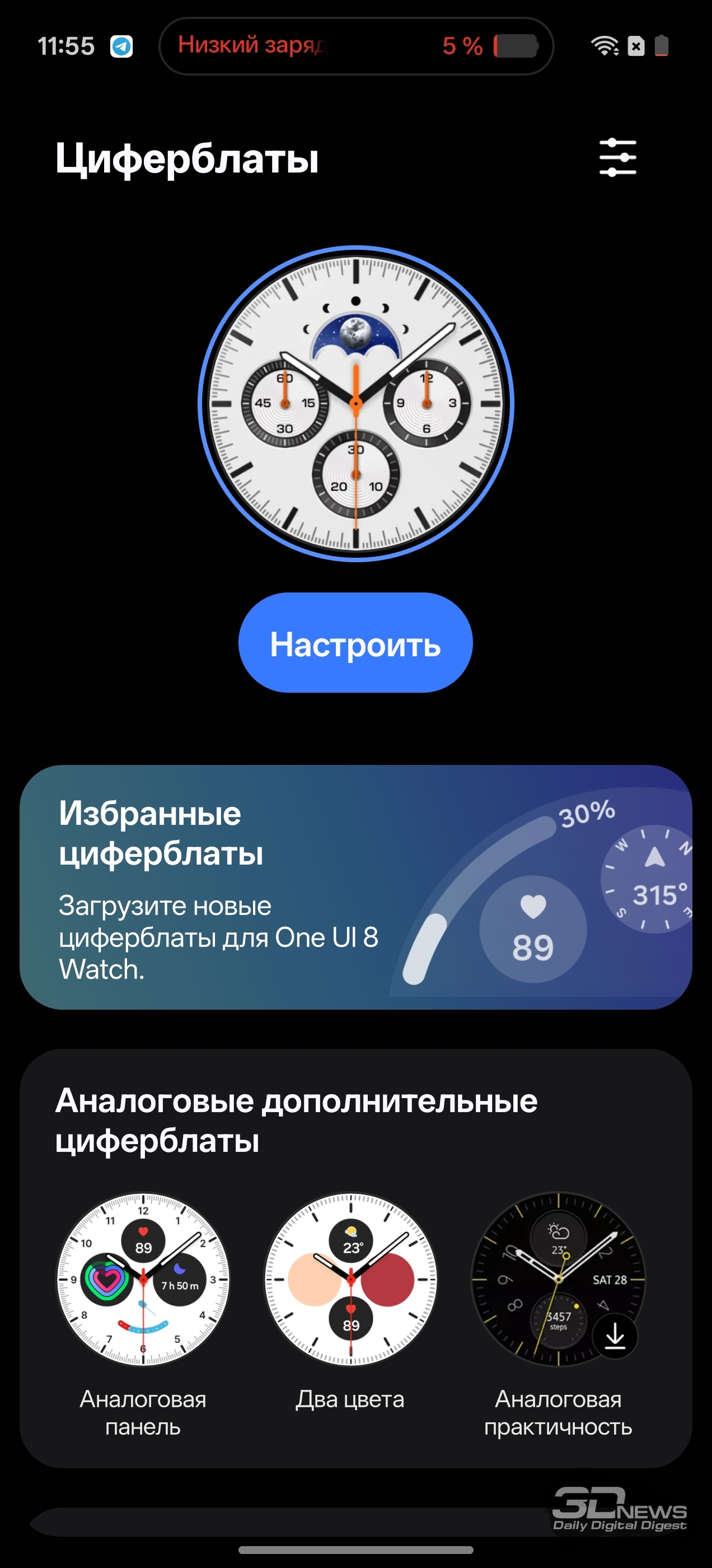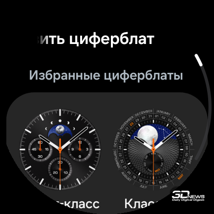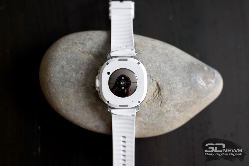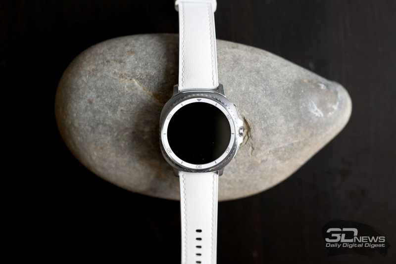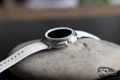 ⇡#Дизайн и конструкцияSamsung верна своему курсу, взятому еще во времена первых Samsung Galaxy Watch, выпущенных в 2018 году, — круглый корпус, выдающийся безель, который можно крутить (и с помощью этого движения пролистывать экраны меню в интерфейсе). Другое дело, что крутящийся безель теперь оставлен привилегией только модели Classic, о чем я уже писал выше, — и «обычные» Watch8, и Watch Ultra лишены этого характерного для Samsung элемента. Если же рассуждать о Samsung Galaxy Watch8 Classic в отрыве от внутренней серийности, то можно сказать, что они полностью соответствуют своему названию. И действительно выглядят как классические наручные часы: корпус из полированного металла, спокойные цвета, рифленый безель, крупные клавиши сбоку, причем центральная — круглая, на манер колеса подзавода на «механике». При этом я бы не назвал их брутальными или даже однозначно «мужскими» — они не лишены изящества и смотрятся достаточно «легко». Как минимум в белом исполнении, которое попало к нам на тест. Существуют также черные Galaxy Watch8 Classic. На фото они тоже выглядят благородно, если позволите здесь такой термин. Материалы в зависимости от версии часов не различаются — нержавеющая сталь, сапфировое стекло, полимерная тыльная поверхность с датчиками. Ремешок — из натуральной кожи, белого или черного цвета. При желании его легко можно поменять, используется традиционное 22-миллиметровое крепление. Фирменные ремешки при этом устанавливаются или снимаются при помощи специальной клавиши, реализован механизм удачно. Схема управления довольно проста — в основном используется сенсорный дисплей (диагональю 1,34 дюйма), есть клавиши быстрого доступа к режимам тренировок, меню приложений и функциональная клавиша. Все они настраиваются в приложении на телефоне, можно подрихтовать управление под свои нужды. Про безель я уже не раз говорил — он, по сути, не нужен в функциональном плане, но крутить его как минимум приятно, тем более присутствует тактильный отклик. Часы достаточно тяжелые — 63,5 грамма. Конкуренты (в том числе и с более крупными экранами) чуть легче, но разница измеряется буквально граммами (а то и десятыми долями грамма). По факту носить Samsung Galaxy Watch8 Classic на руке приятно целыми днями, от них не устаешь, снять вечером не тянет. Хотя делать это приходится — да, чаще, чем хотелось бы, но об этом поговорим ниже. Экран не слишком крупный, как я уже сказал, но очень яркий — если не активировать опцию Always-On Display, он будет включаться, когда смотришь на циферблат. Делает он это корректно, лишний раз нажимать клавиши, чтобы просто посмотреть время, необходимости нет. Ночью активируется специальный режим с затемненным циферблатом — впрочем, это все тоже настраивается, причем уже на самих часах. На тыльной поверхности находятся многочисленные датчики, причем для работы с некоторыми из них необходимо часы снимать с руки и прикасаться к рабочей поверхности большим пальцем, — в этом отношении конкуренты из Huawei, для примера, сработали изящнее с датчиками. Здесь они тоже частично вынесены на клавиши, но полностью избавиться от необходимости снимать/надевать устройство инженеры Samsung не смогли. Интерфейс часов Samsung Galaxy Watch8 Classic