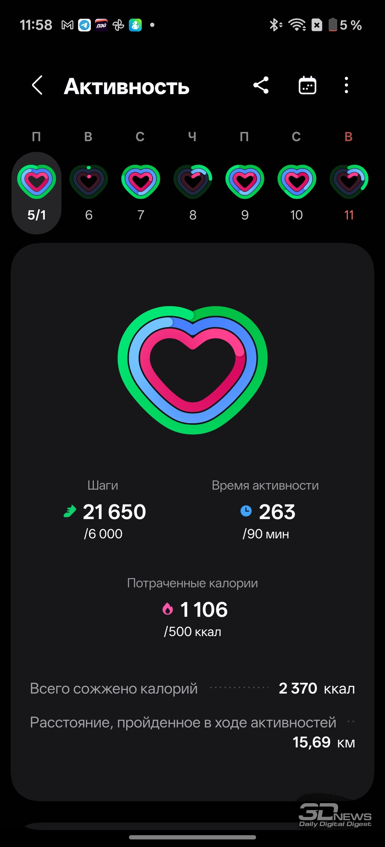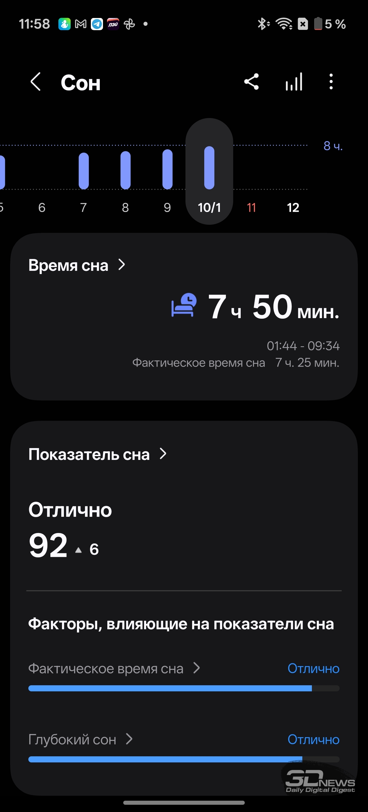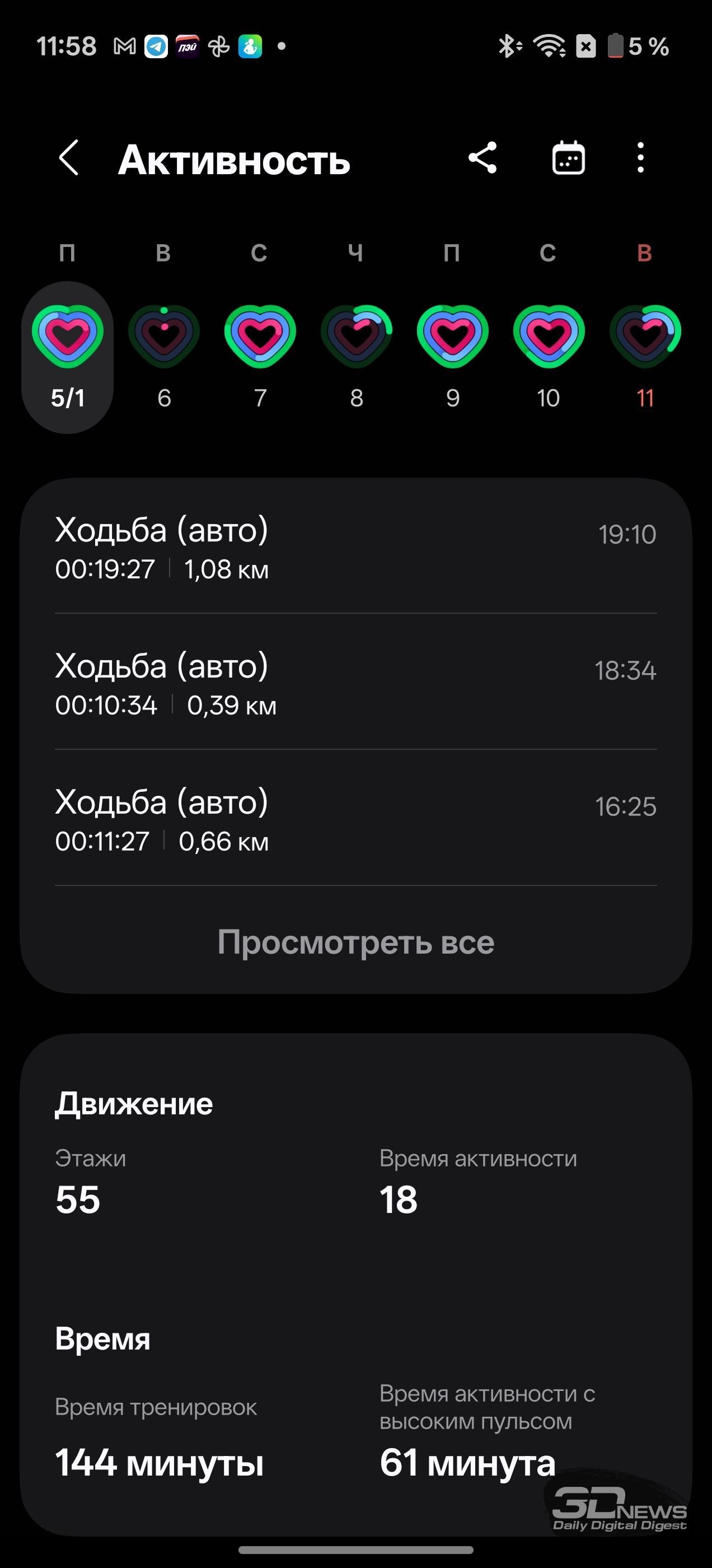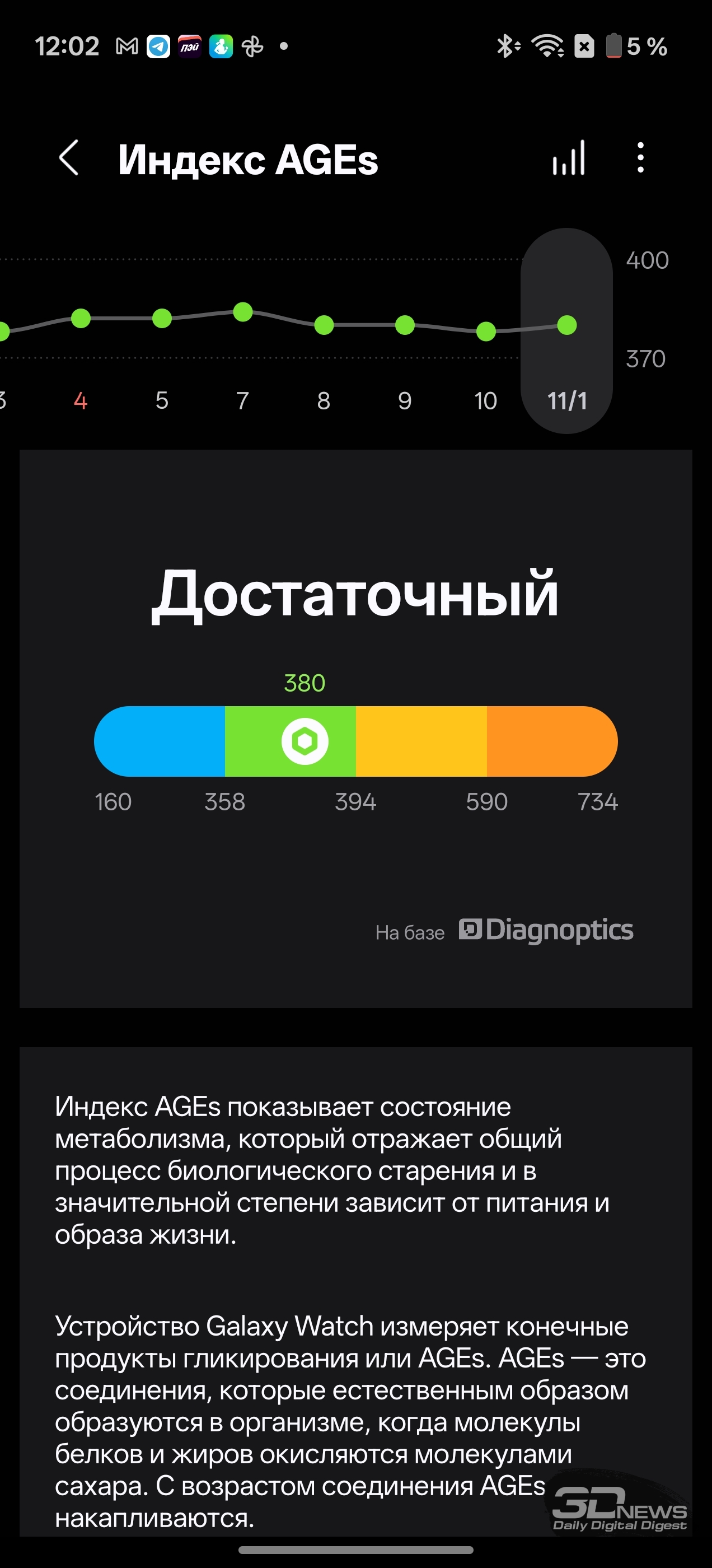 Смотреть все изображения (36) Раз уж мы заговорили о приложениях — одним из самых неоднозначных моментов во взаимодействии с Samsung Galaxy Watch8 Classic мне видится очень долгая и довольно муторная первоначальная настройка часов и необходимость устанавливать минимум два приложения на смартфон (Samsung Wearable и Samsung Health, а желательно еще и Smart Switch). Сами по себе приложения приятные, понятные и функциональные, а изобилие настроек заставит те же часы Huawei (да и Apple) побледнеть от неловкости, но множество лишних действий и само обилие сущностей расстраивает. Конечно, при сопряжении со смартфоном Samsung все намного проще (хотя бы потому, что там все приложения установлены по умолчанию), но столь выраженную «экосистемность» часов я к их плюсам отнести не могу. Тем более что она подчеркивается недоступностью некоторых функций при взаимодействии со сторонними устройствами — речь об измерении ЭКГ, артериальной жесткости и давления. Если же говорить о доступных с обычным смартфоном Android функциях слежения за здоровьем, то вся база на месте: шагомер, пульс, уровень кислорода в крови, уровень стресса (по запросу), отслеживание сна (в том числе качества дыхания, того же кислорода в крови и так далее). Есть и специфические параметры измерения: уровень антиоксидантов в крови (для его измерения как раз надо снять часы и нажать большим пальцем на датчики, расположенные на тыльной поверхности часов), индекс AEGs (текущее состояние метаболизма, очень условно отражающее процесс биологического старения), сосудистая нагрузка (измеряется по запросу во время сна) и возможность определить (опять же, по запросу) состав тела (жир, мускулатура, вода и так далее). Вдобавок в приложении можно вести дневник пищи, отслеживать менструальный цикл, кровяное давление, сахар в крови, часы и приложение могут посоветовать дыхательные упражнения, заполняются привычные «кольца активности». Сочетание «часы + приложение» способно стать отличным подспорьем для каждого, кто следит за своим здоровьем, — далеко не только для спортсменов (хотя зачем нужны умные часы, если вы совсем не занимаетесь спортом, — мне непонятно). Samsung Galaxy Watch8 Classic качественно справляются с функциями инструмента для контроля за тренировками. В них записано более 100 тренировочных программ, базовые (бег, ходьба, велосипед, плавание) часы умеют распознавать самостоятельно и запускать соответствующий режим. Есть встроенный тренер по бегу, который может определить, правильно ли вы двигаетесь, дать советы и составить тренировочный план. Ничего сверхъестественного как тренировочный инструмент Galaxy Watch8 Classic не предлагают, но, опять же, обязательная программа выполнена на очень высокий балл, есть и приятный бонус в виде того самого встроенного ИИ-тренера по бегу. А теперь, пожалуй, о самом главном нюансе, который касается как часов Samsung, так и часов Apple (во многом они побратимы, конечно). Речь об автономности. Здесь установлена батарея емкостью 445 мА·ч — почти в два раза меньше, чем на тех же HUAWEI WATCH 5. При том что Galaxy Watch8 Classic тяжелее — но с экраном меньшей диагонали. А разница в автономности (не в пользу устройства Samsung) даже больше, чем двукратная, — Watch8 Classic надо обязательно заряжать каждые два дня, если не усердствовать с тренировками с записью трека при помощи GPS. Необходимо прямо-таки тщательно следить за своим ритмом, не забывать стави