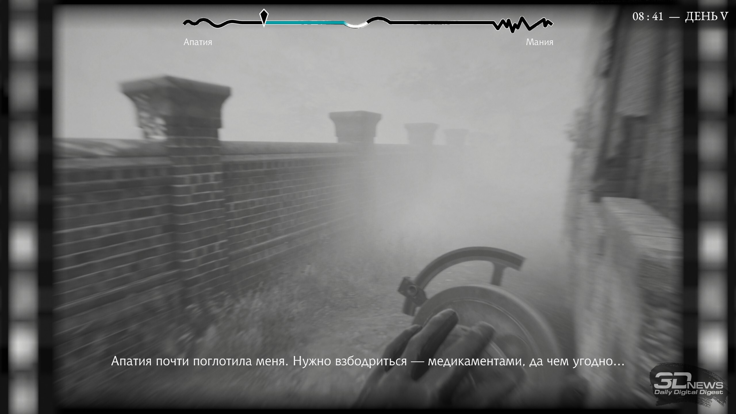 Для постановки диагноза нужно внести в карточку факты о пациенте, которые мы узнали в диалоге или при осмотре, и по совпадениям определить болезнь Также, обладая знаниями о будущем, можно попробовать спасти тех, кого постигла печальная судьба не по вине эпидемии. Или же менять какие-то несущественные вещи в надежде, что и они окажут влияние на общую картину будущего. Раз за разом, по крупице, пытаясь собрать наиболее благоприятную последовательность больших и маленьких событий, Данковскому предстоит немало побегать по городу, и этот процесс также представлен довольно интересной механикой, которая дополнительно отражает нестабильное состояние Бакалавра. Доктор легко впадает в апатию или в состояние мании, и эти крайности напрямую влияют на игровой процесс. Скажем, апатичный Данковский еле перебирает ногами (прямо как герой Pathologic 2) и едва ли успеет сделать за день всё, что необходимо. Зато маниакально настроенный Бакалавр несётся по городу как угорелый, но и плата за скорость существенная — здоровье. Пробудете в состоянии мании слишком долго — смерть. Впрочем, если уйдёте в глубокую апатию, то смерть от собственной руки (для борьбы с суицидальным настроением есть мини-игра) тоже весьма вероятна. Любое состояние можно стабилизировать: либо препаратом из кармана (держа в голове, что лекарства с каждым применением будут действовать всё менее эффективно), либо через взаимодействие с миром. Качнули качели на детской площадке — схватили немного апатии; ударили мусорный бак — ускорили себя дополнительной манией; застрелили человека из соображений самообороны — тут же поднимается волна сожаления, а за ней накатывает прилив апатии.