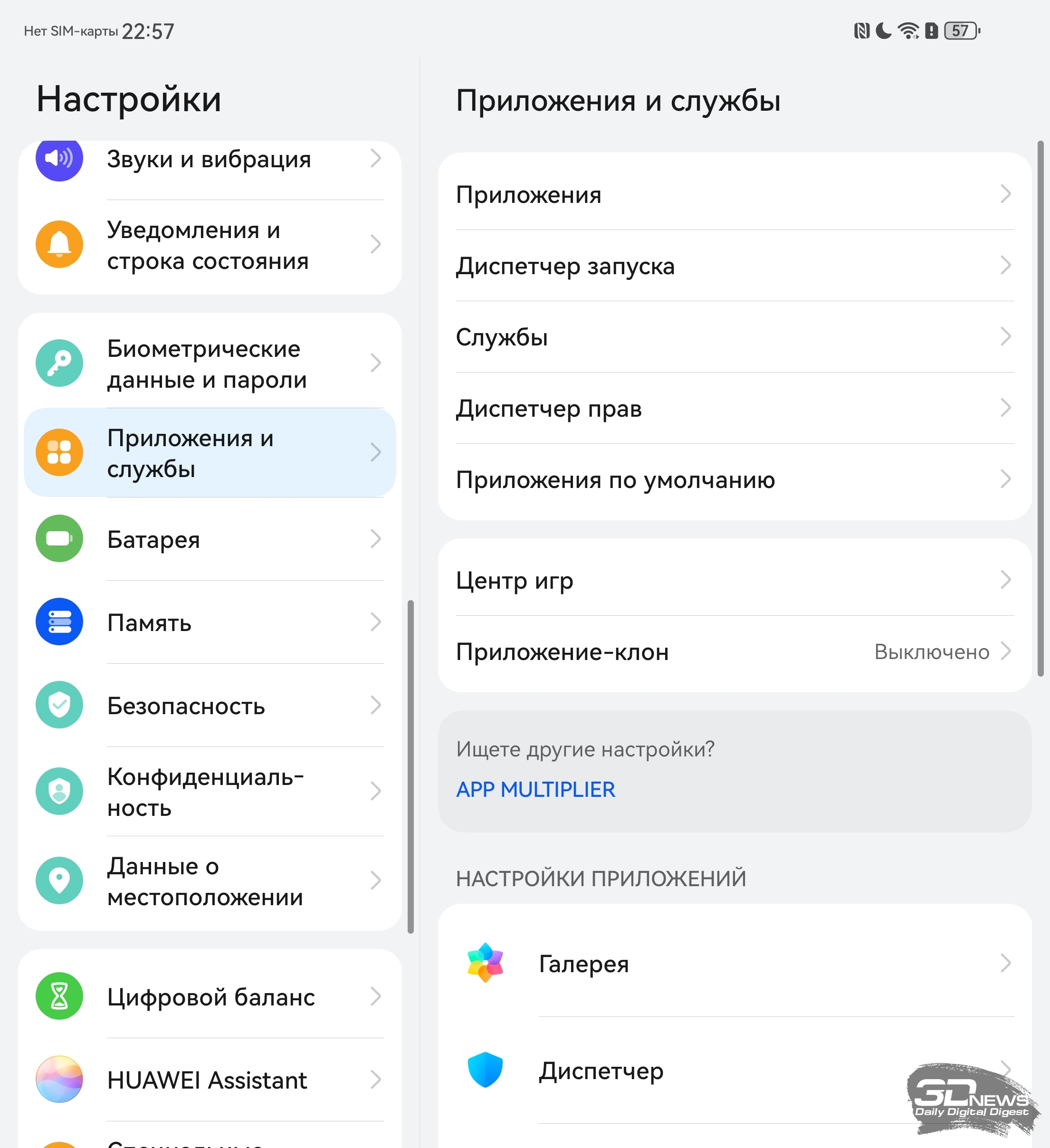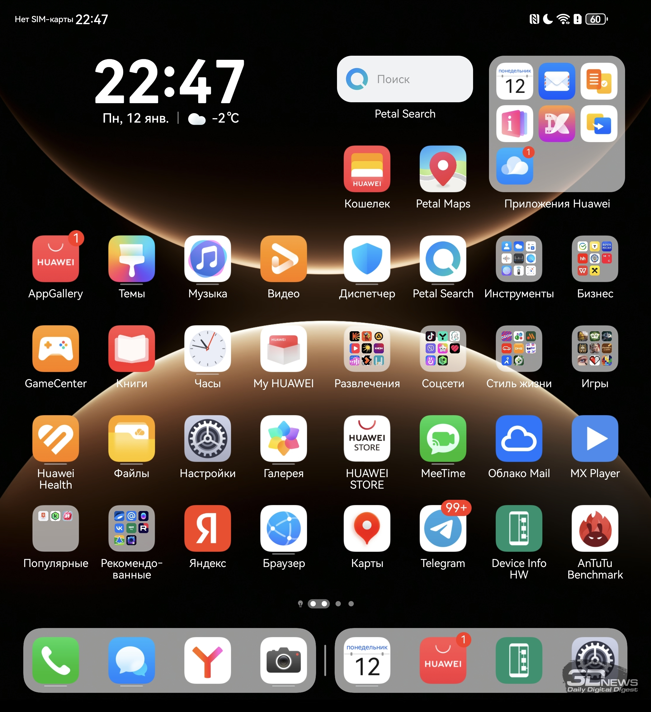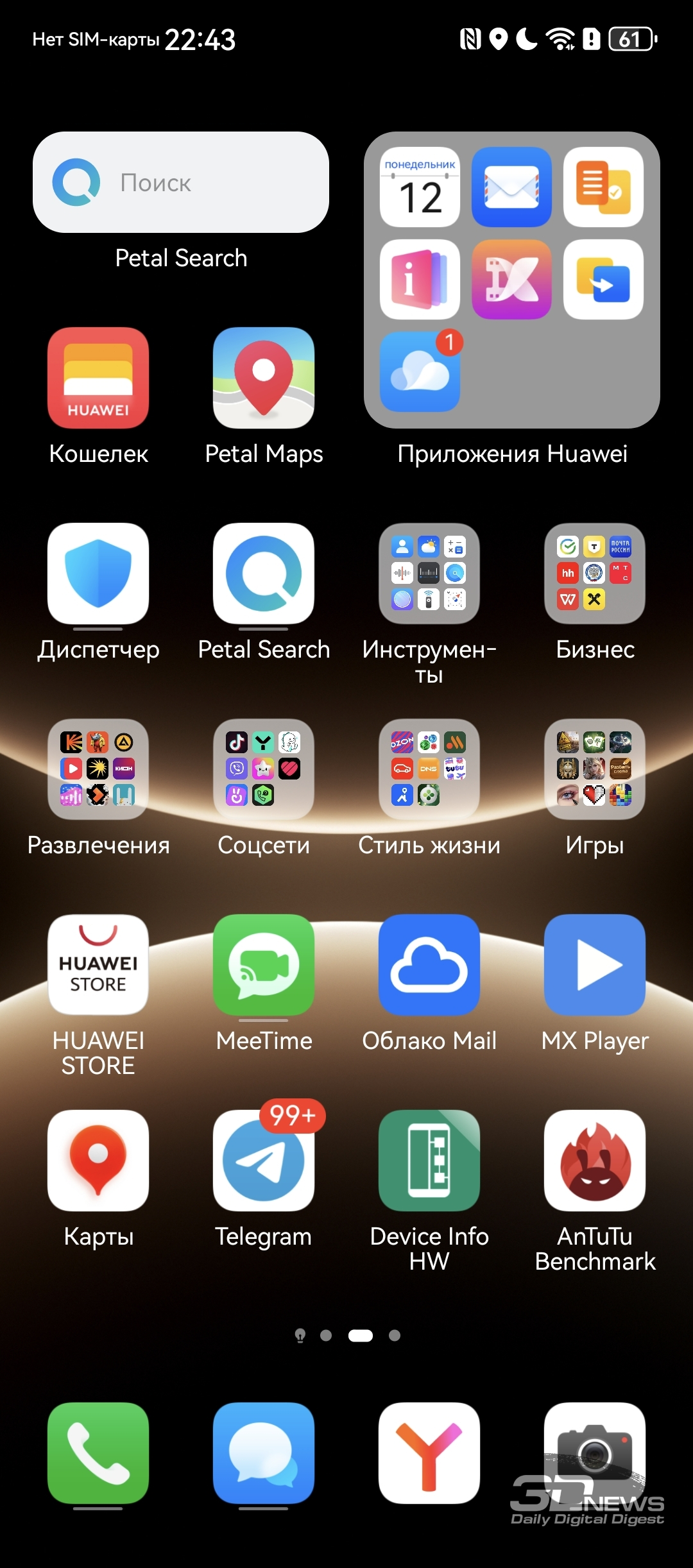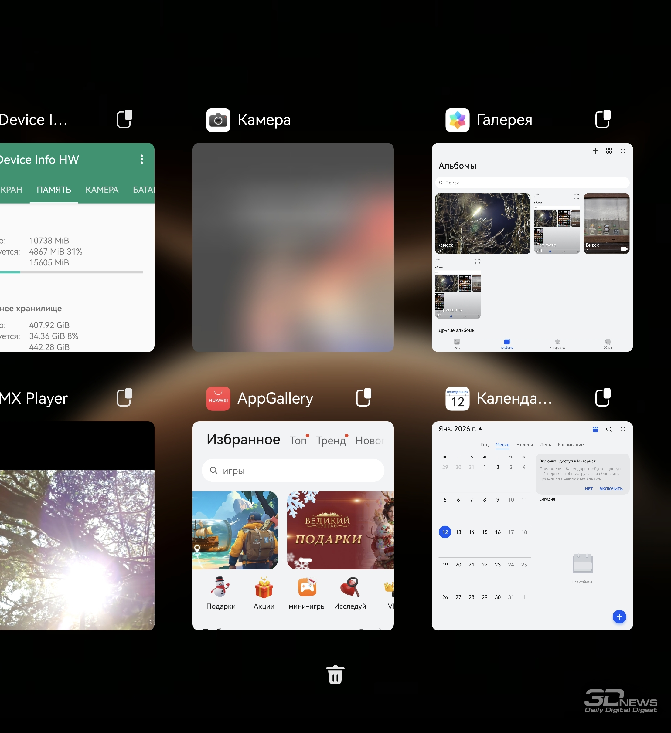 Напомним, что EMUI 15 – операционная система, сделанная на базе открытого кода Android, но без сервисов Google. То есть магазина приложений Play Market и официальной поддержки гугловских сервисов тут нет, но установить любой софт можно как через фирменный магазин AppGallery, так и через сторонние магазины (например, RuStore), не говоря уж об apk-файлах. А приложения Google (или другие, но тесно аффилированные с Google Mobile Services) — при помощи специально разработанной среды (Gbox или ей подобных). Интерфейс операционной системы EMUI 15 на внутреннем экране HUAWEI Mate X7