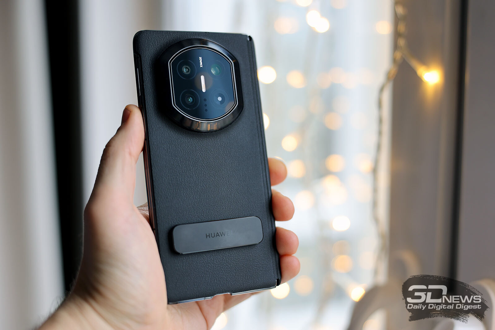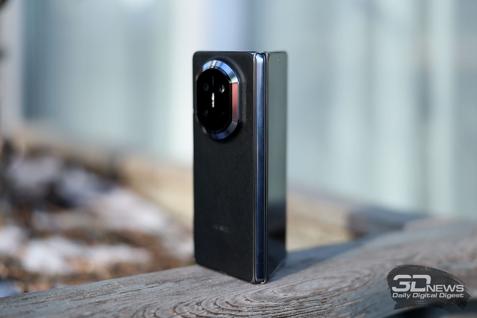 Внешние изменения HUAWEI Mate X7 незначительны: сохранен и общий стиль, и детали, вроде блока камер необычной формы. Только теперь он не «упакован» в круг и чуть более вытянутый. И, самое важное, сильнее выступает над корпусом, крадя те самые драгоценные сотые доли миллиметра, за которые борются все создатели смартфонов (особенно складных). Сам по себе корпус стал формально тоньше на 0,1 мм, при это в сложенном положении выигрыш составляет уже 0,4 мм — за счет шарнира новой конструкции. Но, как я уже отметил, это именно формальности, здоровенная камера мешает насладиться тонкостью корпуса в полной мере, как это обычно и бывает — как со складными конкурентами (вроде HONOR Magic V5), так и с монолитными (в стиле iPhone Air). При этом смалиртфон стал слегка шире и уже — из-за увеличившихся экранов (внутренний теперь на 8,0 дюйма, внешний — на 6,49 дюйма).