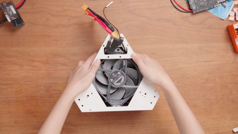 Ключевая идея заключается в том, что объединённые приставки образуют форму треугольника и крепятся к единому радиатору охлаждения, расположенному в центре устройства. Дополнительное охлаждение для всех трёх приставок обеспечивает вентилятор в нижней части устройства. Энтузиастка быстро смоделировала и напечатала на 3D-принтере треугольный радиатор. Проблема заключалась в том, что стоимость фрезеровки радиатора такой сложной конструкции на станке с ЧПУ оказалась бы слишком высокой.