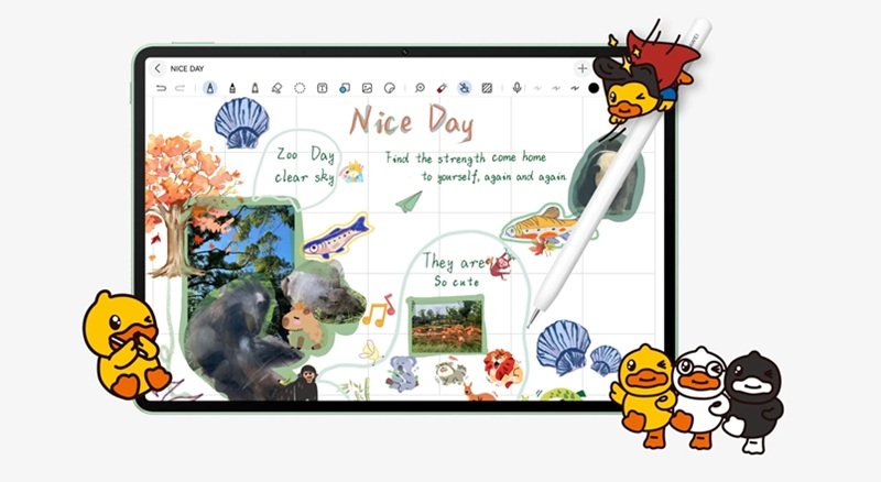 Планшет поставляется с предустановленными приложениями для работы и учёбы. В приложении «Блокнот» предлагаются ИИ-функции, включая распознавание и решение уравнений для обучения, синхронизацию текста и аудио, общий буфер обмена между устройствами и работу в режиме разделённого экрана. Также доступен для использования центр ресурсов с шаблонами бумаги, стикерами и обложками, приложение GoPaint с анимационными эффектами и Wondershare Filmora для видеомонтажа. Компьютерная версия приложения WPS Office позволяет использовать планшет в качестве мобильного офиса для работы с документами и презентациями.