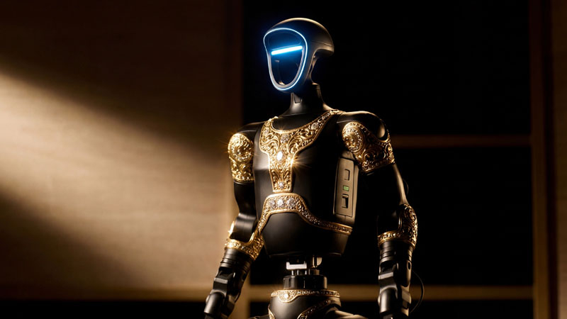 Российский люксовый бренд Caviar представил проект человекоподобного робота «Аладдин», оформленного в восточном стиле. В основе проекта лежит серийно выпускаемый робот Unitree G1 компании Unitree Robotics. Компания Caviar, верная своему подходу в украшении золотом и каменьями современных электронных гаджетов, перенесла опыт кастомных скинов на робототехнику, демонстрируя притягательную силу роскоши в самых неожиданных проявлениях.