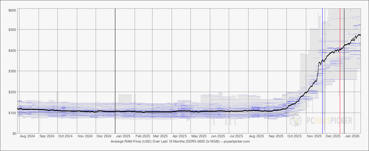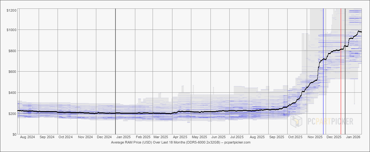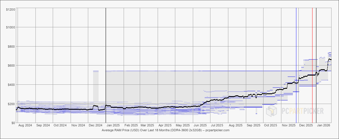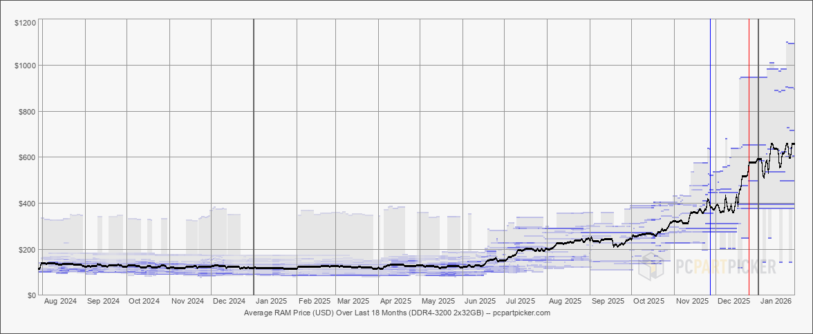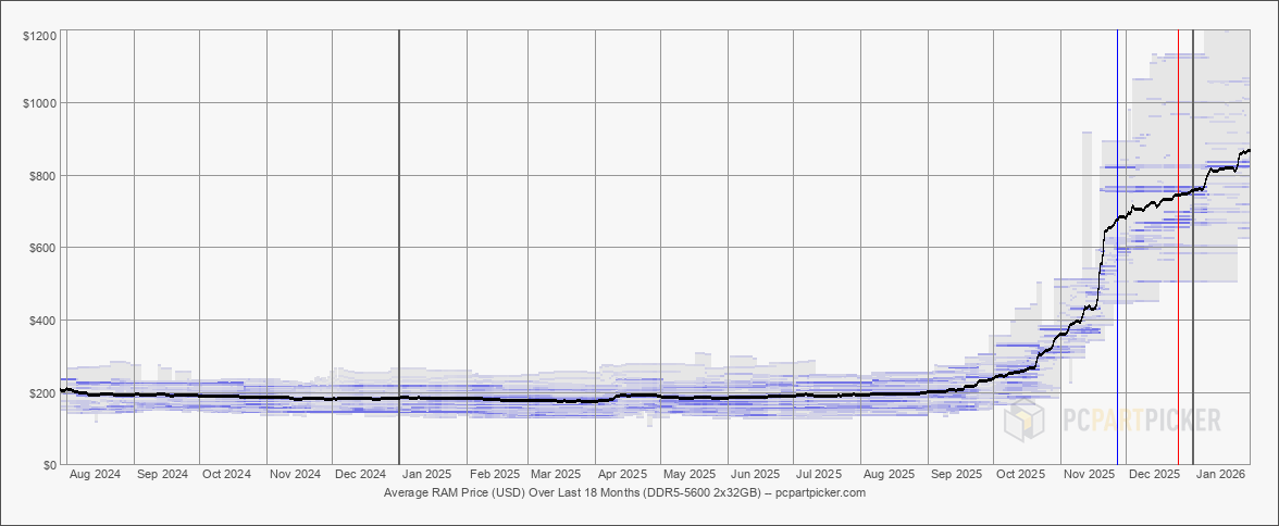 Признаки дефицита памяти начали проявляться в третьем квартале 2025 года, когда ненасытный спрос на высокопроизводительные чипы памяти HBM со стороны создаваемой инфраструктуры ИИ совпал с поэтапным отказом нескольких производителей от выпуска памяти DDR4 в пользу более прибыльной DDR5. Максимальный эффект от этого стал заметен в ноябре и декабре, когда розничные продавцы в Японии и Германии начали нормировать поставки модулей памяти и SSD большой ёмкости и даже видеокарт. Именно поэтому в конце минувшего года представитель Kingston предупредил пользователей, что им не следует откладывать покупку оперативной памяти или SSD, поскольку цены на эти компоненты продолжат расти.