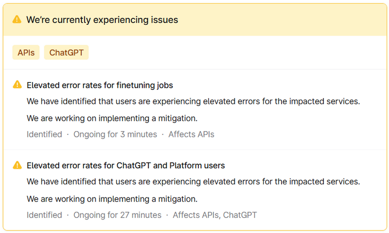 «Мы обнаружили, что пользователи сталкиваются с повышенным количеством ошибок в затронутых услугах [ChatGPT и API]. Мы работаем над внедрением мер по устранению этой проблемы», — гласит заявление OpenAI.