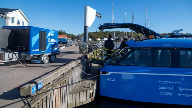 Необычное полностью электрическое судно P-12 на подводных крыльях шведской компании Candela установило мировой рекорд для этого нового класса судов: оно без отклонений от маршрута прошло 160 морских миль, что соответствует 296 км. Маршрут пролегал от Гётеборга (Швеция) до Осло (Норвегия) и занял три дня с несколькими остановками на подзарядку. Паром заряжался на пристани без замены батарей, что делает P-12 чрезвычайно удобным для эксплуатации.