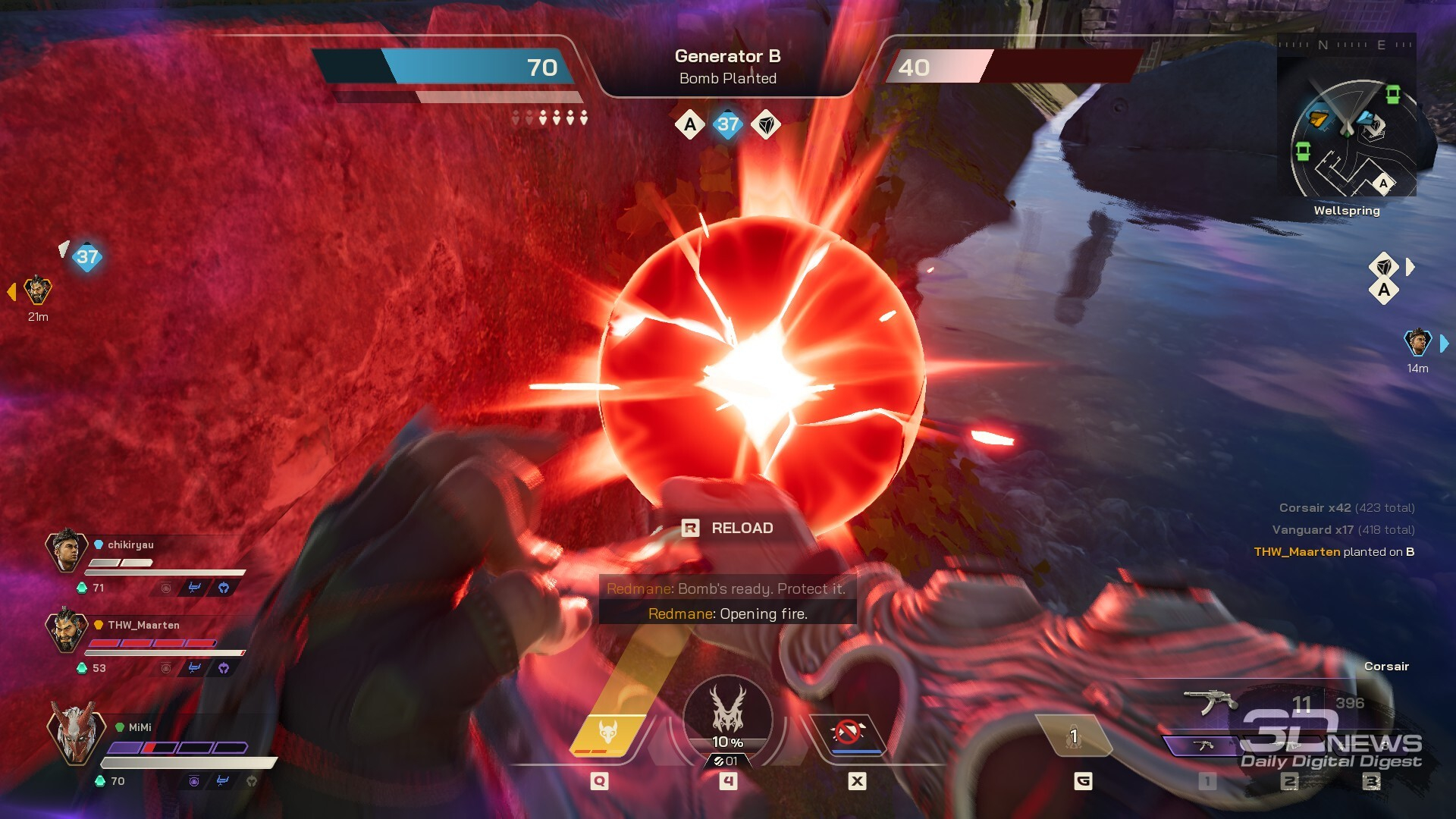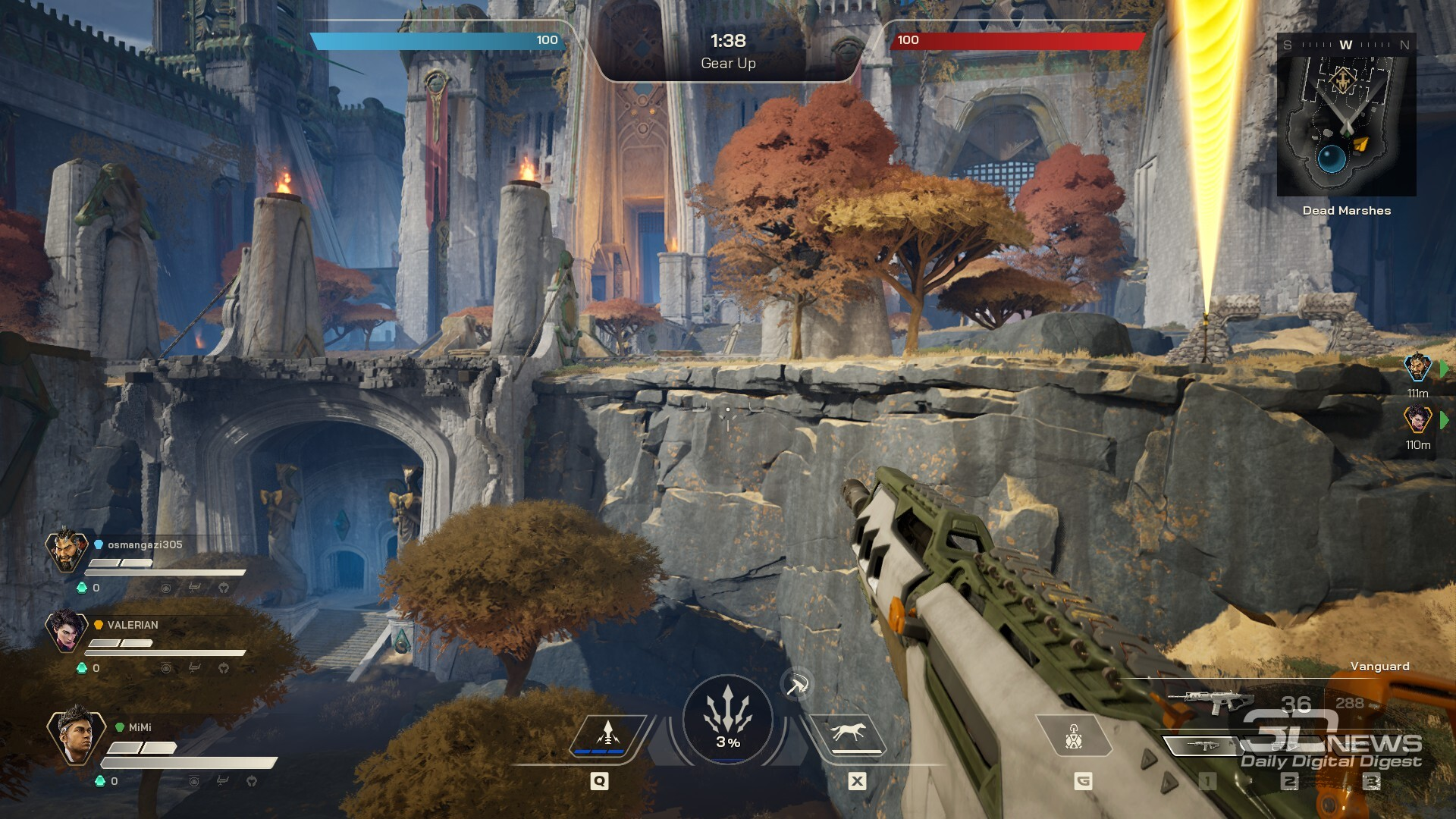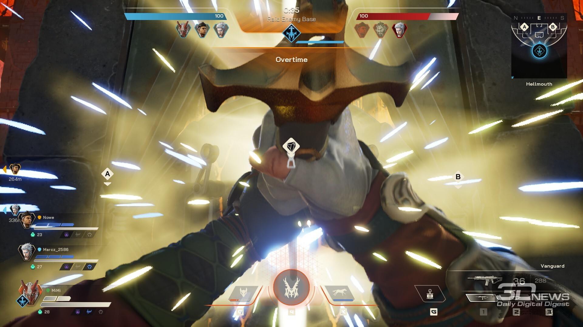 Противники оставляют после себя сферу, и если её не «впитать», то оппонента могут вернуть к жизни соратники Подобный хаос и неуверенность в подходе чувствуются во всех аспектах игры. Будто бы разработчики боялись выкинуть что-то лишнее, а потому оставляли вообще всё. Обычно такие решения принимают в ходе QA-сессий или плейтестов, в ходе которых команда может собрать достаточно мнений, чтобы отполировать и улучшить игру в нужных аспектах. Этому явно уделили недостаточно внимания: это видно как в посредственном техническом исполнении и визуальной блеклости, так и в игровом процессе, где лихие осады и адреналиновые ситуации соседствуют с чрезвычайно скучными этапами поздних «закупов», плюс масса ненужных механик и слишком большие локации для всего шести человек. К слову, проблему с форматом «три на три» обозначили многие игроки, и разработчики уже выпустили экспериментальный режим, где могут сойтись команды по пять персон. Первичное негативное отношение к игре абсолютно понятно, а разработчикам определённо стоило провести один-два плейтеста для игроков, чтобы исправить слабые стороны Highguard. А так игра напоминает бета-версию потенциально интересного проекта, в который технически сложно играть. Однако пока что разработчики не опускают руки и всеми силами не дают своему детищу уйти в забвение. Уже в первые дни запуска они показали, что слышат аудиторию, выпустили несколько заплаток (лично я разницы не заметила, игра вылетает всё так же стабильно), открыли уже упомянутый экспериментальный игровой режим «пять на пять», и обещают продолжать развивать проект вместе с сообществом. И я искренне надеюсь, что у них получится сделать из Highguard стоящую внимания аудитории игру. Достоинства: