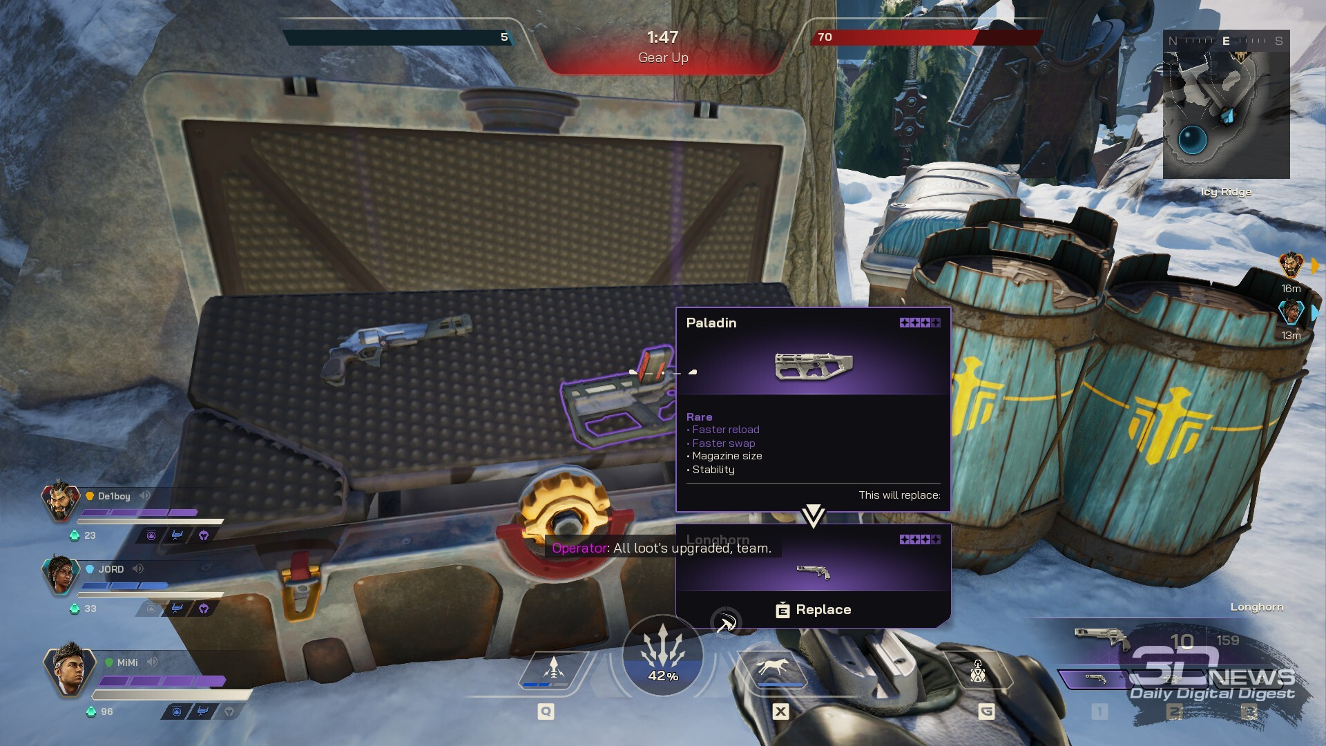 Играли на PC Highguard может стать основой для написания инструкций по тому, как не следует презентовать и выпускать свою игру — ведь проект собрал настоящее «бинго» тяжёлого релиза. Тут и туманное позиционирование в трейлере, и крайне неудачный слот для дебютной презентации (за трейлер на закрывающей части The Game Awards 2025 проекту прилетело больше всего ненависти) и, разумеется, сырое техническое состояние на релизе. Учитывая и без того не самое тёплое отношение игрового сообщества, стоило бы сделать всё возможное, чтобы игра хотя бы работала как надо. Но релиз не отложили, больше времени тестированию и полировке не уделили. Впрочем, чтобы столкнуться с багами, игру надо хотя бы запустить, и даже с этим у многих есть трудности… ⇡#Испытание волиКак сказал один мой товарищ, которого мне почему-то не удалось затащить в Highguard: «Скучаю по временам, когда игра требовала от меня только желание играть, а не BIOS под неё настраивать». Сложно с ним не согласиться: первое, что увидят желающие сыграть в Highguard — указание зайти в BIOS и разрешить системе Secure Boot. Процедура несложная, но, уверена, уже на этом этапе желание опробовать Highguard у многих (Женя, привет) отпало напрочь. Кстати, заодно убедитесь, что TPM 2.0 также включён. Но на этом приключения с запуском не заканчиваются — например, если вы играете из России, то вместо главного экрана у вас, скорее всего, будет странное недозагруженное нечто. Проблема, схожая с тем, с чем столкнулись игроки в FBC: Firebreak. Разумеется, энтузиасты и тут нашли выход — надо просто (!) добавить пару строчек в файле в папке из системной директории system32. Или же, рискуя стабильным пингом, играть с VPN. Разработчики же, узнав о сложностях геймеров из РФ, нашли крайне элегантный способ решения проблемы: просто закрыли страницу с игрой для российских аккаунтов. А потом снова открыли, но осадочек, как вы понимаете, остался. Преодолев все вышеописанные трудности, вы встретите на пути ещё немало проверок погрузиться в баталии Highguard: пресловутые заикания картинки, вылеты посреди сессии, постоянные разрывы соединения, неубедительная производительность на многих системах, ну и, наконец, просто скверная оптимизация. И даже если вы попадёте в матч, велика вероятность, что из сессии выкинет кого-то из ваших соратников или противников, что тоже не способствует веселью. И, держа всё это в голове, я даже не удивлена, что онлайн проекта спикировал со вполне приличных ста тысяч игроков в вечер релиза до пяти тысяч на момент написания статьи. Довольно сложно сохранять интерес к проекту, который всячески сопротивляется вашему желанию в него поиграть. К тому же, пройдя такой путь, хочется увидеть что-то, стоящее всех предпринятых усилий… ⇡#Битва двух крепостейHighguard представляет собой рейд-шутер в формате «три на три», где вам предстоит разрушить базу оппонентов. Матч может длиться как один раунд, так и несколько, в зависимости от того, как пройдёт штурм. Каждый раунд разделён на этапы: сначала игроки разбегаются по довольно большой карте в поисках сундуков с экипировкой или добывают «веспер» — валюту, на которую можно прикупить вооружение и броню у местного торговца. Уже в ходе первого этапа возможны столкновения команд, но гарантированно синие и красные сойдутся в борьбе за Щитолом (ориг. Shieldbreaker, здесь и далее — авторский перевод терминов из игры), мощный арт