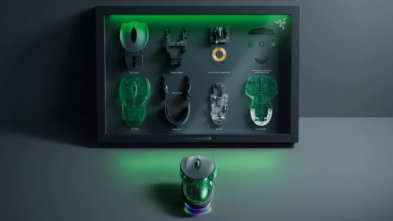 Покупатели получат дополнительную выставочную рамку с LED-подсветкой, в которой можно разместить все части мыши для демонстрации. Razer также включила в комплект поставки набор стеклянных накладок для ножек, которые пригодятся, если оригинальные придут в негодность в процессе эксплуатации.