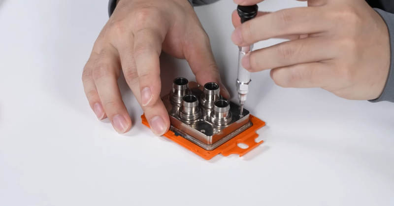 Вместо использования традиционного двухтрубного водоблока, Geekerwan протестировал альтернативную четырёхтрубную конфигурацию на процессоре Ryzen Threadripper 1900X. В такой системе два центральных входа подают жидкость, которая выводится двумя выходами по бокам. Такая конструкция обеспечивает равномерное рассеивание тепла между двумя CCD-блоками. Результаты оказались впечатляющими: температура снизилась на 5,1 градуса Цельсия по сравнению с двухтрубными конструкциями.