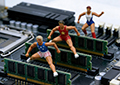 Мы уже подробно обсуждали в своё время, по какой причине и передовые, и отстающие изготовители микросхем компьютерной памяти надолго застряли на условном «10-нм» рубеже миниатюризации: хранящие заряд конденсаторы в составе ячеек DRAM должны иметь вполне определённые габариты, чтобы эффективно выполнять свою функцию. Иные же — бесконденсаторные — способы именно оперативной записи данных либо обходятся чрезмерно дорого в пересчёте на актуальные для современных вычислений объёмы ОЗУ (та же SRAM), либо отстают по комплексному соотношению ключевых параметров (себестоимость изготовления — предельная плотность хранения в битах на квадратный миллиметр готового чипа — производительность), как PCM, ReRAM или STT-MRAM. В 2008 г. основная масса DRAM в мире выпускалась по техпроцессам категории 4x, т. е. «40-нм» класса (от «39 нм» до «30 нм»), в 2010-м — 3x, она же «30-нм», а к 2016-му добралась до 1x («19−10 нм»). Далее темпы миниатюризации притормозили: если процесс 1x фактически соответствовал «17 нм», то 1y (внедрён серийно в 2018 г.) — «14 нм», а 1z (2020-й) — «11 нм».