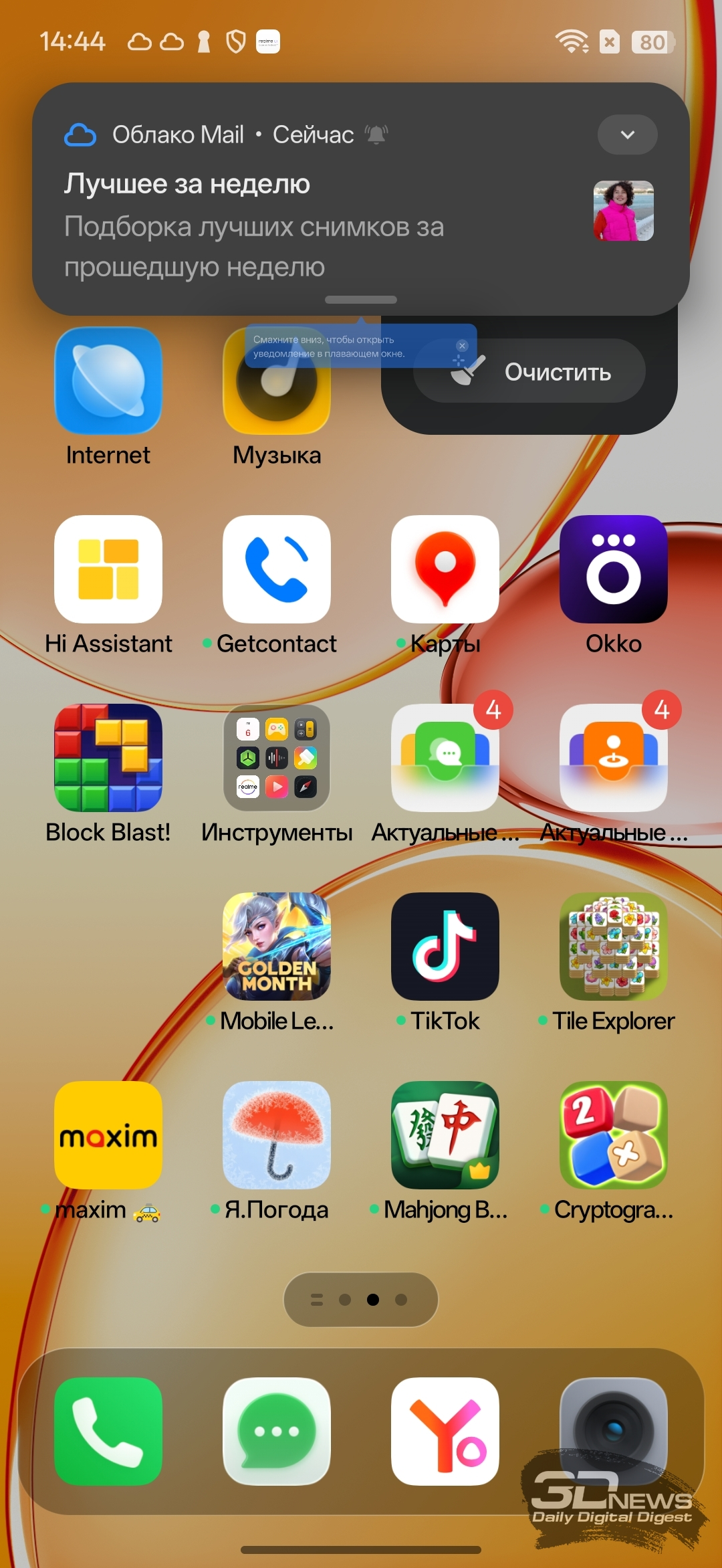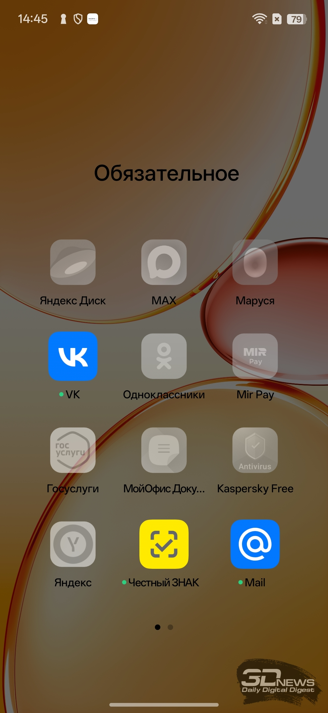 realme С85 Pro, нижняя грань: микрофон, порт USB Type-C, динамик, слот для карточек nano-SIM и карты памяти MicroSD Функциональные элементы самые стандартные: пара клавиш на правой грани, динамик и слот для карточек на нижней. Дополнительной решетки для вывода динамика на верхнюю грань нет — здесь чистая монофония. Отдельно производитель подчеркивает уровень защиты корпуса realme C85 – и это действительно один из самых прочных и выносливых смартфонов на рынке. Один из немногих в своей ценовой категории, он предлагает уровень влагозащиты IP69K, который означает одновременно и устойчивость к погружению на глубину до 1,5 метров, и способность выживать при попадании воды под давлением. Более того, он должен выдерживать попадание не только воды. Заявлено, что смартфон проверен 36 типами жидкостей, в числе которых сок, чай, кофе, алкогольные напитки, молоко, шампуни, средство для мытья посуды и так далее. В «Шуманите» купать гаджет не стоит, но попадание чего-то не слишком едкого он должен пережить. А экран с закаленным стеклом должен выдерживать падения с высоты 1,8 метра. Это чуть ниже моего роста, но я проверял — падение и с высоты 1,9 метра он должен выдержать. Не в 100 % случаев, конечно, но в целом он к этому готов. В комплекте со смартфоном поставляется не только зарядное устройство, но и чехол, выполненный из прозрачного силикона, причем с рифленой поверхность, что добавляет дополнительного своеобразия дизайну гаджета. ⇡#Программное обеспечениеrealme C85 Pro работает на базе ОС Android 15 с программной оболочкой realme UI 6.0. Впервые мы с ней столкнулись на realme 15 Pro, и та версия, с которой мы имеем дело на этом смартфоне, к ней очень близка, даже несмотря на разный статус устройств. Интерфейс оболочки realme UI 6.0 на смартфоне realme C85 Pro