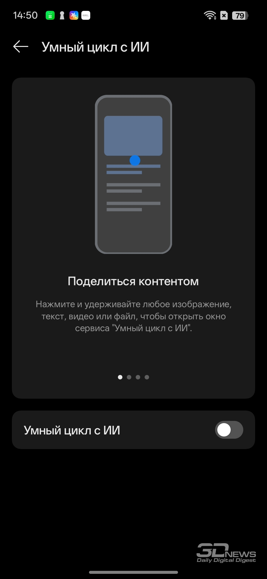 Смотреть все изображения (23) Близка в плане интерфейса и базовой функциональности. Это все та же простая в усвоении и управлении, но перегруженная предустановленными приложениями система, с раздвоенными панелями уведомлений и быстрого доступа, с хорошими возможностями кастомизации. Система развивается, в обзоре realme 15 Pro я сетовал, например, на недостаточно контрастную клавиатуру в темном режиме — здесь с такой проблемой я не столкнулся, клавиатура хорошая. ИИ-функциональность на смартфоне realme C85 Pro
