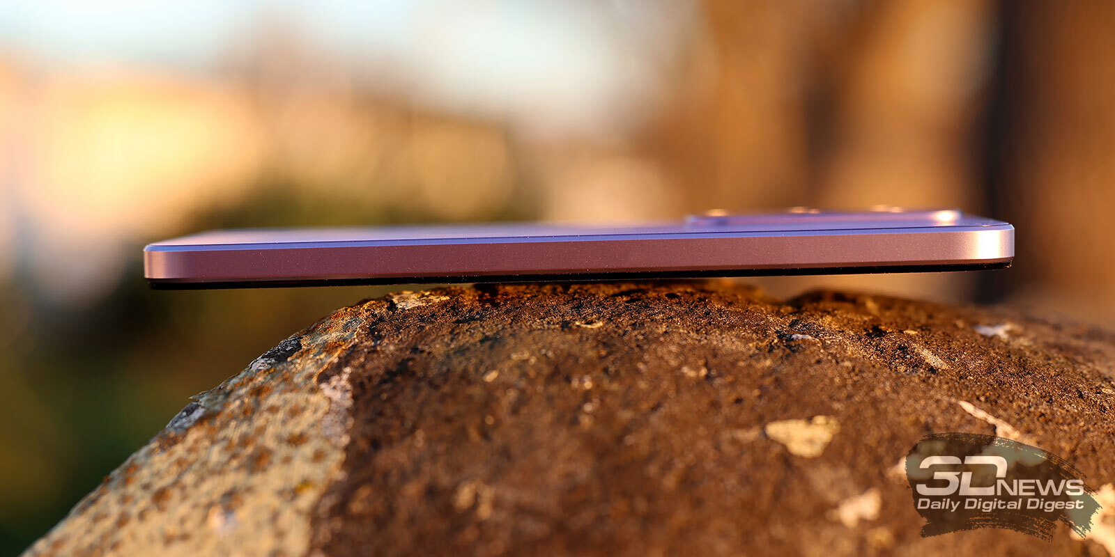 realme C85 Pro, правая грань: клавиша питания со встроенным сканером отпечатков пальцев, клавиша регулировки громкости/спуска затвора камеры Габариты — обычные, скажем так. Здесь realme C85 Pro не удивляет ни в хорошем смысле, ни в плохом. Не самый тонкий, но и не слишком толстый. В меру тяжелый. В карман помещается без проблем, но в узких брюках будет сильно выпирать. В общем, все более-менее привычно, миниатюрных смартфонов сейчас почти не делают, а герой этого обзора со своим крупным дисплеем (6,8 дюйма) и еще более здоровой батареей на компактность и не претендует.