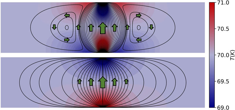 Явление объясняется тем, что в чистых кристаллах столкновения фононов сохраняют импульс, позволяя теплу течь коллективно, как несжимаемая жидкость. Исследователи разложили гидродинамическое уравнение на ключевые элементы поведения потока, показав, что обратный поток максимально усиливается именно при почти несжимаемом режиме: поток не «сдаётся» сопротивлению, а перенаправляется вспять, формируя вихри. Теоретическая модель и численные симуляции на двумерной полоске кристаллического графита подтвердили возможность такого эффекта и дали аналитический инструмент для его количественного описания и оптимизации.