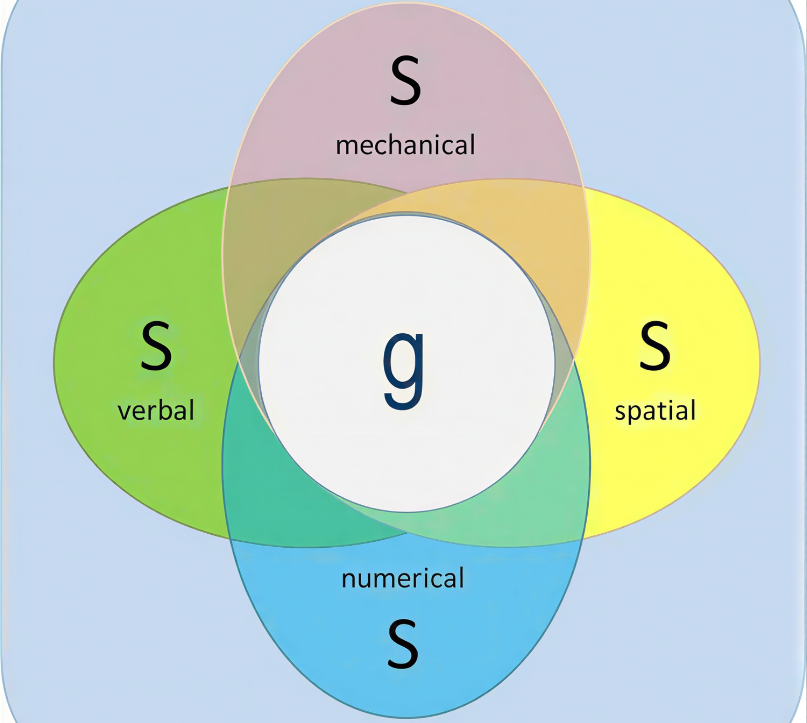 Через специализированные s-факторы различных умственных способностей косвенно определяется общий g-фактор интеллекта (источник: Simply Psychology) ⇡#Всё упирается в GТем не менее, параллелей между кантианским определением интеллекта и тем смысловым наполнением, что несёт тот же самый термин в словосочетании «ИИ», предостаточно. И классической философией дело не ограничивается: в конце XIX — начале XX века, на фоне всеохватной индустриализации и повсеместного перехода к комплектованию армий по призыву, остро встала необходимость измерять интеллект, оставляя уже даже за скобками выяснение его физической или метафизической природы. Стало слишком очевидно, что кто-то уверенно сладит с паровой машиной даже в критической ситуации, а кто-то и ключи подавать обречён сплошь не те; что один новобранец освоит беспроводной телеграф за неделю, а другому и для подметания плаца ничего более хрупкого, чем лом, доверять не следует. В этой связи начало развиваться тестологическое (или психометрическое) направление в изучении интеллекта: Чарльз Спирмен (Charles Edward Spearman), один из пионеров психометрии, подвёл статистическую базу под известную поговорку «талантливый человек талантлив во всём». Он подметил, изучая результаты школьных экзаменов в самом начале 1900-х, что если некий ученик высоко оценивается по одному из предметов, то с немалой вероятностью он и по другим будет успевать выше среднего. Положительную корреляцию между формально никак не связанными между собой областями мыслительной деятельности Спирмен приписал влиянию некоего преобладающего фактора, который он обозначил, как g (от general, разумеется, — то же слово, что позже вошло в акроним «AGI»), — общий фактор интеллекта. Специфические же для конкретной умственной деятельности способности он безыскусно поименовал s-факторами. Соответственно, количественный тест на выявление величины g-фактора в этой модели сводится к измерению и корректному учёту (поскольку они априори не равновесны) определённого числа s-факторов — через сравнительно несложные и хорошо калибруемые тесты. И хотя с тех пор психометрика существенно эволюционировала — так, методика Реймонда Каттелла (Raymond Cattell) предполагает различение «жидкой» и «отвердевшей» фаз умственных способностей, Gf (от fluid) и Gc (crystallized), — g-фактор продолжает оставаться основой количественных измерений человеческого интеллекта в тестах IQ и им родственных, имеющих сугубо прикладное значение. Особенно для работодателей: как показывают академические исследования, люди с более высокими количественными метриками интеллекта справляются с задачами лучше, потому что быстрее обрабатывают информацию и эффективнее связывают разнородные идеи, создавая в ходе их синтеза новые прикладные инструменты.