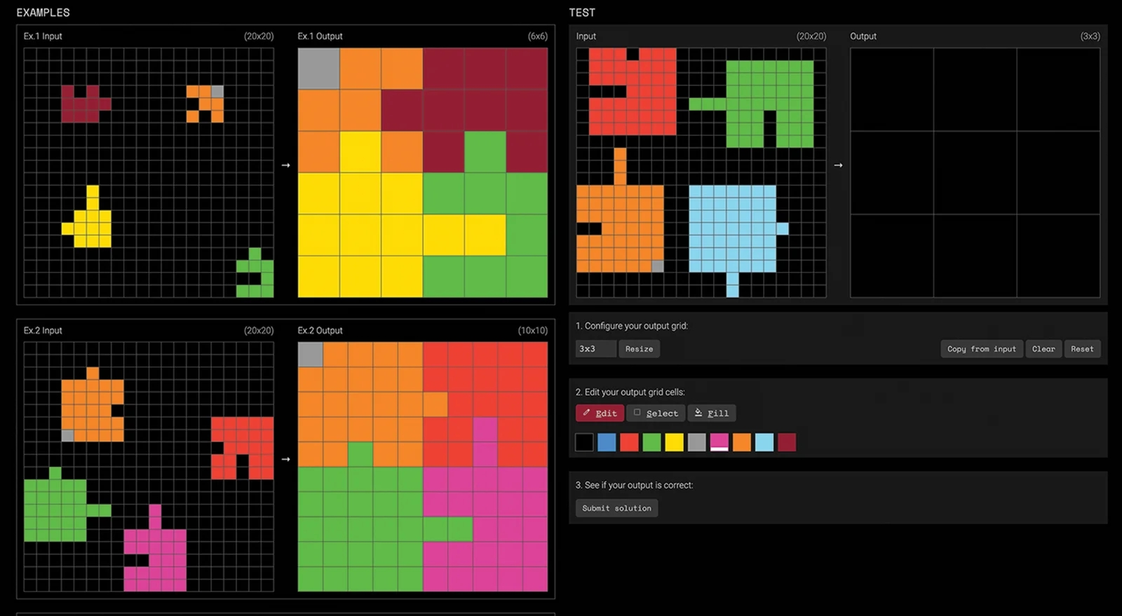 Одна из предлагаемых ARC задач на абстракцию и способность к рассуждению: абстрактные правила, задающие в данном случае взаимное расположение фигур на плоскости без наложений и пустот, ИИ должен вывести — сам для себя — всего из нескольких примеров (источник: ARC Prize Foundation) ⇡#Гибкость на грани текучестиКак Чарльз Спирмен пытался оценить выведенный им g-фактор через измерение множества разнородных s-факторов, так и Франсуа Шолле (François Chollet), ранее сотрудник Google, а позже основатель ИИ-стартапа Ndea, предложил в 2019 г. оценивать способности нейросетей к интеллектуальной деятельности косвенно. А именно — определял, в какой мере та или иная модель в принципе способна приобретать новые способности и насколько легко и быстро ей это удаётся. Такой подход, конечно, тоже небесспорен: если сильный интеллект воспринимать как суперпозицию отдельных когнитивных навыков, то и измерять, по-хорошему, надо бы их все. Однако — вспомним антропологическое определение интеллекта — готовность претендующей на разумность системы вырабатывать новые способы решения не встречавшихся ей прежде задач действительно можно считать наиболее надёжным признаком её условной разумности. По крайней мере, если со способностью приобретать новые способности у ИИ дело плохо, AGI ему точно не стать. Взять хотя бы пресловутые ранние БЯМ — не имевшие доступа в Сеть, не дополненные «рассуждающими» контурами и не готовые дообучаться с подкреплением прямо в ходе коммуникации с оператором: если ответа на заданный им вопрос не содержалось в тренировочной базе, они в лучшем случае признавали свою немощь, а в худшем — напропалую галлюцинировали. Шолле предложил для претендующих на высокое звание AGI нейросетей бенчмарк Abstraction and Reasoning Corpus (ARC), в настоящее время упоминаемый как ARC-AGI-1. Состоит он из сотен задач с визуальными головоломками: каждая задача содержит несколько демонстраций — вот условие, вот верное решение — и контрольного испытания. Здесь проверяется как раз тот самый гибкий («жидкофазный», fliud) интеллект, который особо выделяет школа Каттелла и в котором классические БЯМ откровенно слабоваты. Чтобы решить предложенные головоломки, предварительно накопленные знания не пригодятся, — понадобится умение определять связность объектов, обнаруживать признаки симметрии, выявлять взаимодополняющие элементы. Словом, проявлять то здравомыслие (практически кантовский Verstand), которым обладают способные решать схожие задачки дошкольники. Идея Шолле оказалась настолько хороша, что в течение пяти лет ARC-AGI-1 уверенно отсеивал претендентов на звание «вот-вот, уже почти AGI», выставляя им патетически низкие баллы. Правда, затем OpenAI собралась с силами и выкатила-таки «рассуждающую» модель o3, которая продемонстрировала результат лучше контрольной группы биологических экспертов. Да, победа вышла пирровой, — вычислительные затраты на решение одной головоломки оценивались в 20 тыс. долл. США, — но кто сказал, что AGI на актуальной ныне аппаратной платформе в принципе будет дешёвым удовольствием?