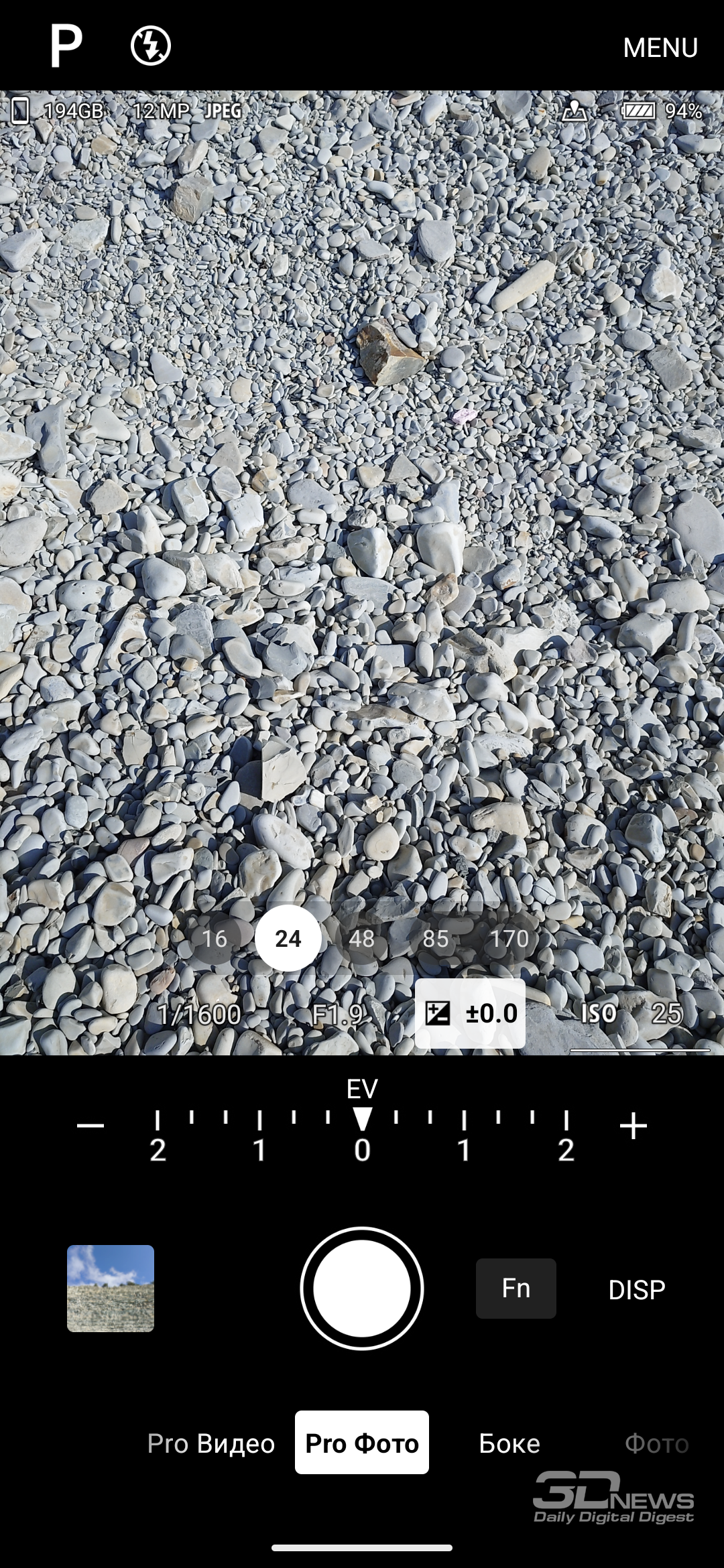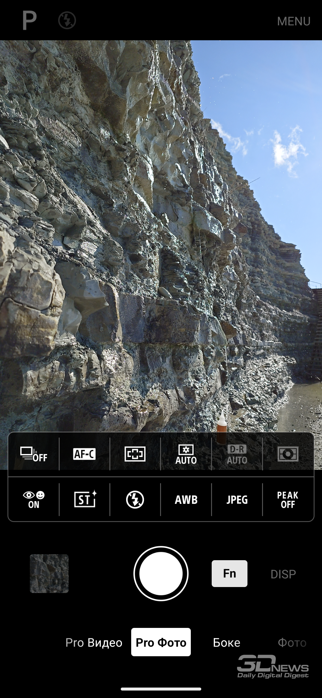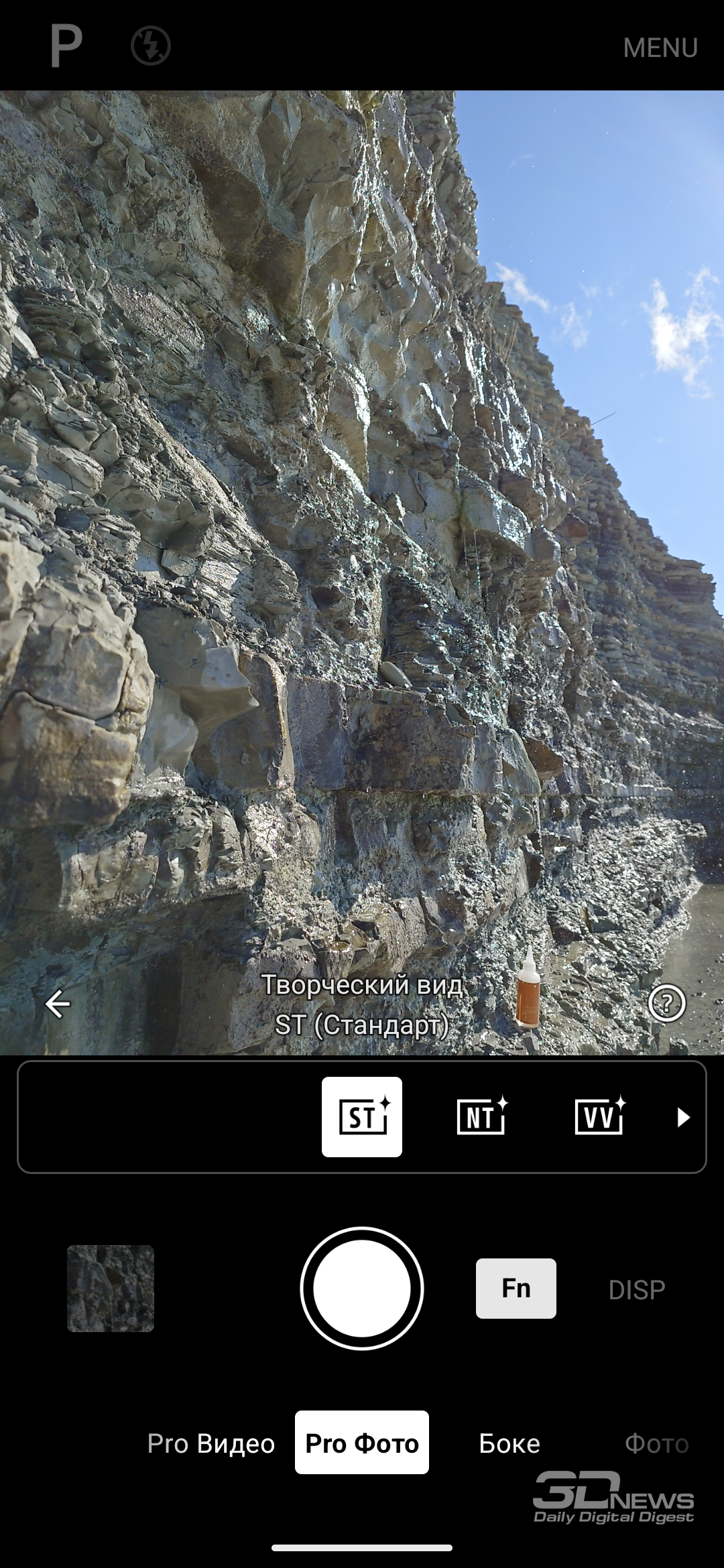 Как обычно у Sony, интерфейс приложения камеры отсылает к камерам Sony Alpha – схожий набор инструментов, те же значки и шрифты, ну и профессиональные режимы, конечно. Есть режимы для подробного ручного управления и фото, и видео. Также появился новый режим — ИИ-съемка видео, о нем расскажем чуть ниже. Набор опций, в целом, небольшой, но зато с выраженным акцентом на ручное управление — то, что и нужно целевой аудитории смартфона. Примеры снимков, сделанных на Sony Xperia 1 VII