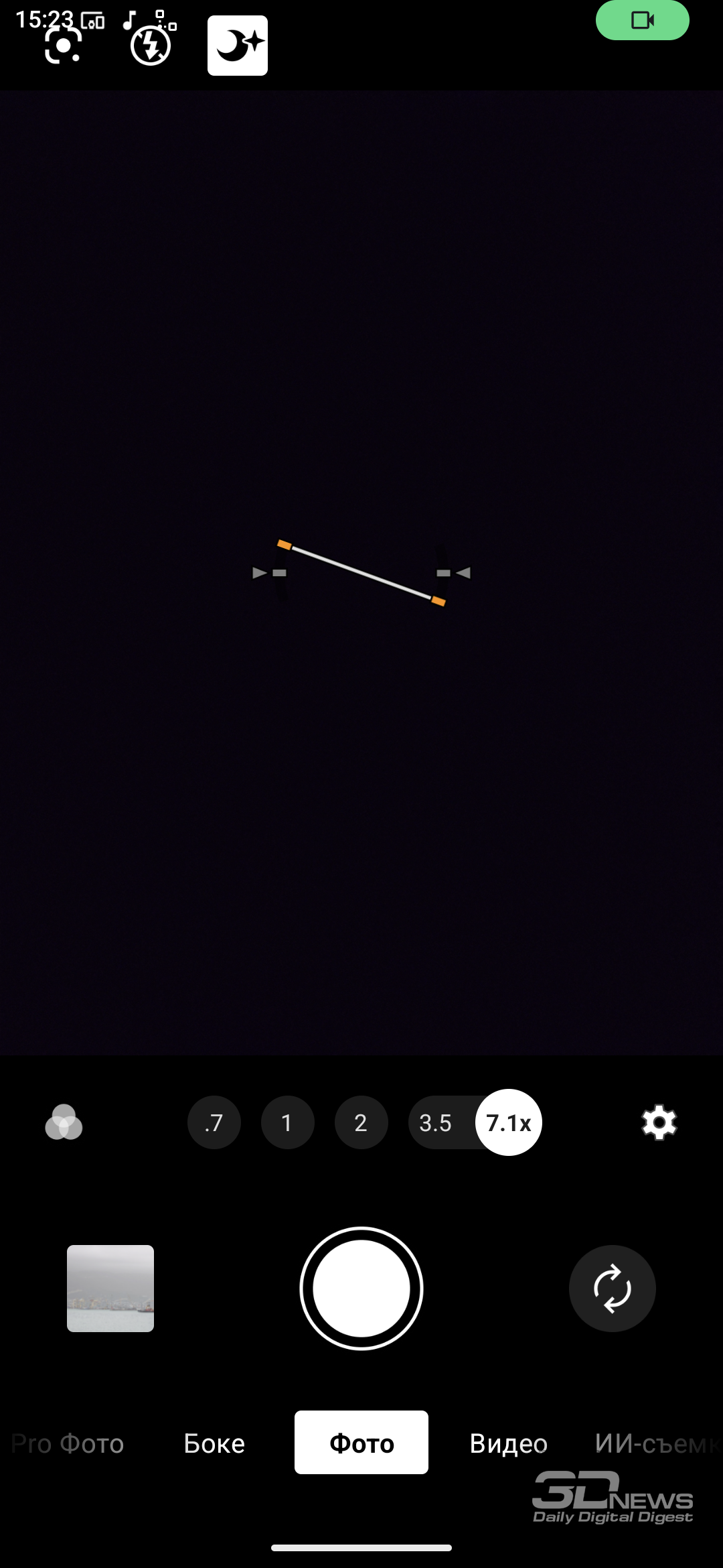 3,5-кратный оптический зум неплох, но не более того. Картинка довольно резкая, процент брака невысок, при съемке с несколькими планами видим приличное естественное боке. Но даже днем заметна нехватка детализации, особенно при съемке при сложном освещении (ярком или же против света), ночью отмечаем высокую резкость, но при этом, опять же, без микродетализации — и с серьезными засветами по объектам освещения. Семикратный (точнее, 7,1-кратный) зум впечатляет, на мой вкус, сильнее. Несмотря на оптику с низкой светосилой картинка словно бы четче даже при ночной съемке. Это иллюзия, конечно, дело в более низких запросах от серьезного масштабирования на смартфоне: если трехкратный зум скорее работает ниже ожиданий, то семикратный — выше. По факту же у него те же проблемы с обработкой засветов и микрорезкостью. Но если сравнивать с конкурентами и их экстремальным (для смартфона) зумом, Sony Xperia 1 VII отрабатывает очень уверенно, на уровне лучших. Добавлю, что, несмотря на одинаковые физически модули, работает семикратный зум у «семерки» лучше, чем у «шестерки». Добавлю, что с обоими вариантами зума у камеры смартфона очень интересный, своеобразный рисунок, с выраженным боке. Широкоугольной камере, как и раньше, не хватает угла обзора — от подобного модуля мы ждем все-таки более радикального прироста широты охвата относительно камеры главной. Здесь же не всегда удается сразу опознать, где угол широкий, а где стандартный. И это как минус, так и плюс, свидетельствующий о высоком качестве съемки на этот модуль. Отличная резкость по всей поверхности кадра днем, шикарный динамический диапазон, а с источниками света в кадре эта камера, пожалуй, работает лучше всех, что для широкоугольного модуля особенно критично. Есть корректно работающий автофокус, придающий модулю универсальности. Ночью, при этом, камере не хватает светочувствительности — да, ситуация заметно лучше, чем в прошлом поколении (и сенсор стал крупнее, и оптика более светосильная), но картинка при недостаточном освещении все равно зачастую мыльная и при этом довольно шумная. А вот в условиях городской иллюминации или на закате — вызывает только положительные эмоции, тут прогресс прямо серьезный. Выше я ничего не говорил про цветопередачу камер Sony Xperia 1 VII. Дело в том, что у смартфона есть проблема с единством баланса белого между различными фокусными расстояниями — старая болезнь обычно недорогих и не слишком серьезно заточенных под фото смартфонов: при расширенном угле обзора, например, картинка, как правило, более холодная, а при съемке с зумом — теплая и более естественная. Для Sony Xperia с заявкой на звание камерофона для профи это совсем несолидно. Среднюю температуру по разным фокусным расстояниям брать не буду, но можно сказать о некоторой тенденции к чуть более холодным, нежели в реальности, оттенкам. Ночного режима в камере Sony Xperia 1 VII (как обычно у Sony) нет, но смартфон автоматически тратит некоторое время (до двух секунд) на съемку в стандартном режиме (не профессиональном), «дотягивая» картинку при помощи дополнительной обработки. Вычислительная фотография используется, но хотелось бы, опять же, чуть большего контроля за ее применением, чего тоже как будто ожидаешь от подобного смартфона для «профессиональной» съемки. Да и в целом по качеству ночной съемки, несмотря даже на задейст