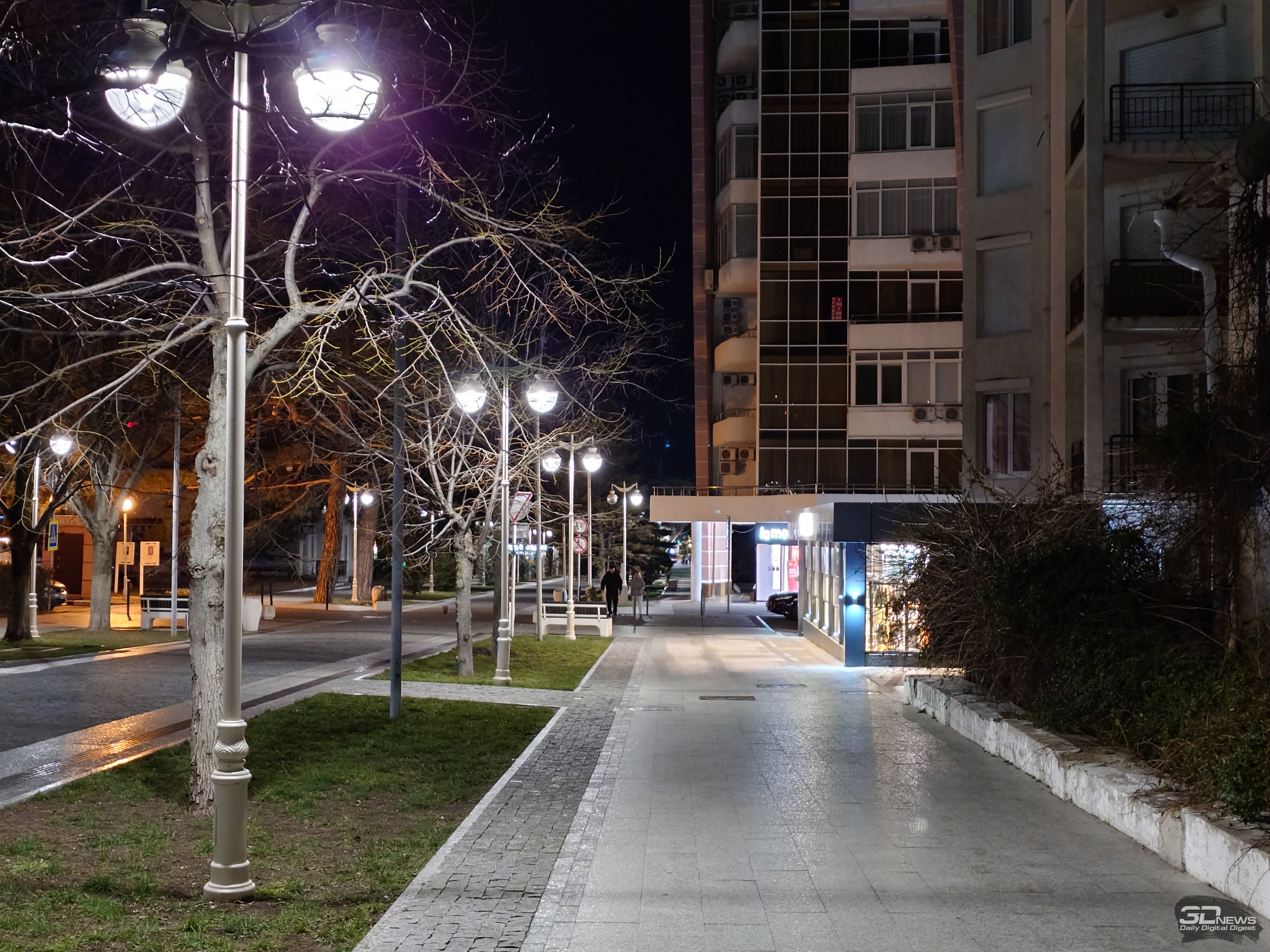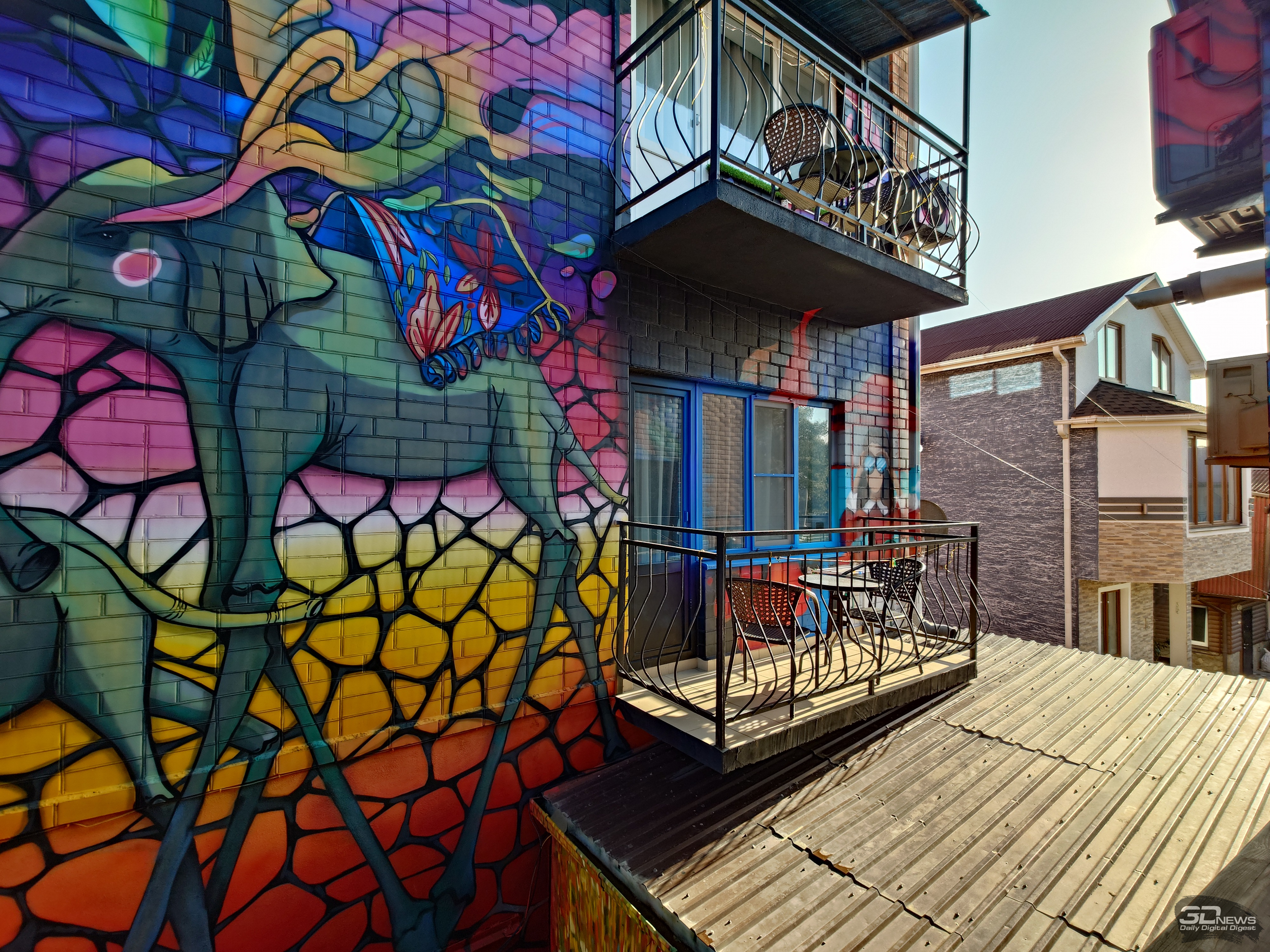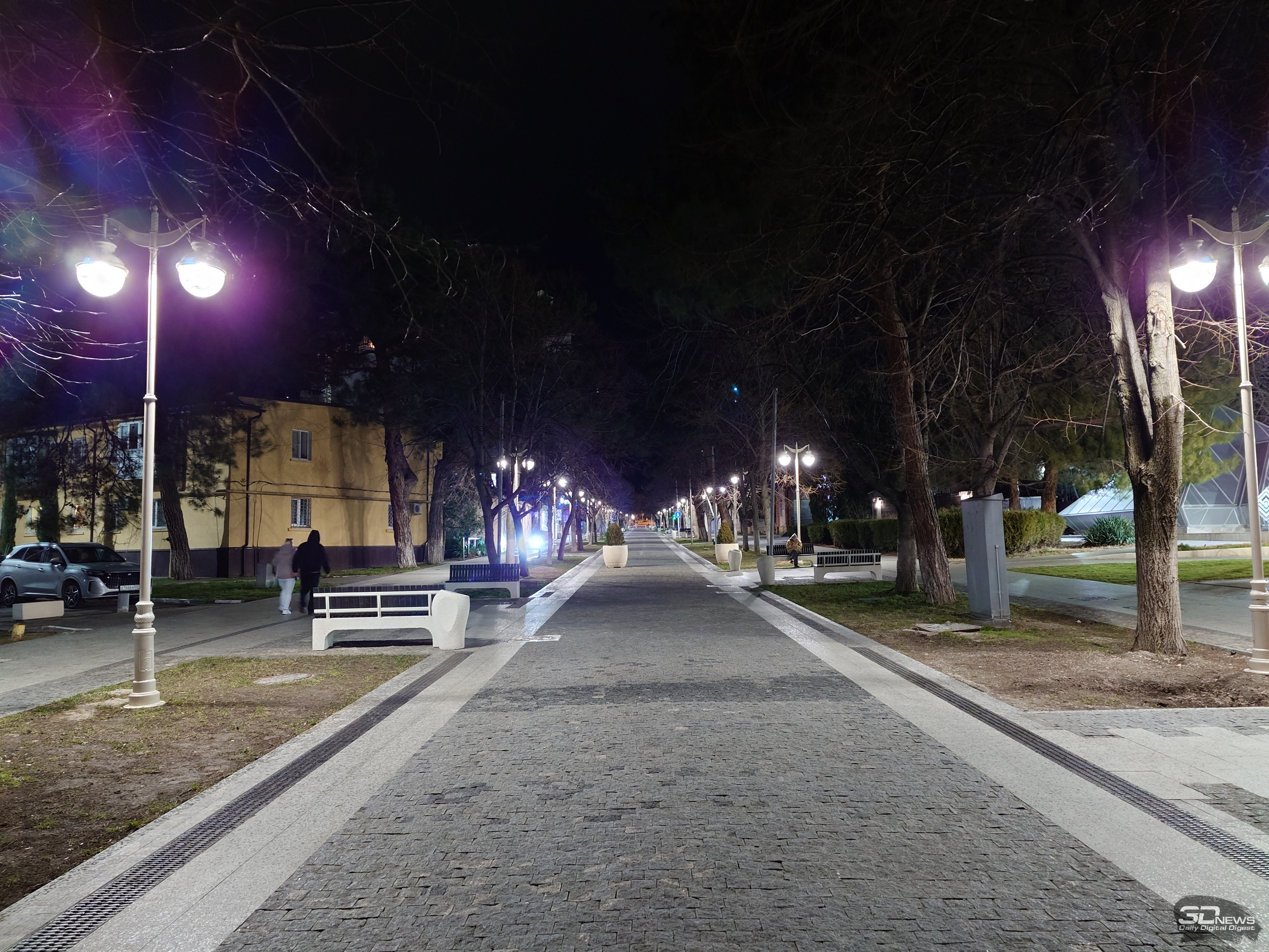 В базовом меню съемки мы видим пять доступных фокусных расстояний — помимо уже упомянутых опций также есть двукратный «гибридный» зум за счет кропа с 48-мегапиксельной картинки, сделанной на главную камеру. Качество съемки на главную камеру днем — высокое: отмечаем хорошую детализацию без выраженного «перешарпа» (хотя слегка жирные контуры присутствуют, без этого вообще редко обходится) и достойный динамический диапазон. В прошлом поколении обработка снимков была приближена к той, что мы привыкли на камерах — то есть приходилось очень сильно следить за экспозицией самостоятельно и, чтобы добиться нужного баланса светов и теней, обрабатывать затем фото в редакторе. Здесь при съемке в базовом режиме все более привычно для смартфона — HDR задействуется по умолчанию, баланс между светлыми и темными областями ровный, недосвеченные или пересвеченные снимки днем получаются редко. А вот ночью камера не блещет — довольно слабо работает с источниками освещения (есть и блики, и засветы), не хватает детализации, которая как раз «вытягивается» за счет повышения контурной резкости. Но это в условиях совсем слабой освещенности. Ночной город на главную камеру Xperia 1 VII можно снимать без проблем. Двукратный «гибридный» зум (кроп от 48-мегапиксельной картинки с последующей обработкой) реализован вполне приемлемо – есть легкая замыленность, но в целом режим рабочий днем и в вечерних/ночных условиях при хорошем внешнем освещении. Глубокой ночью же и резкость падает, и серьезные шумы при этом есть.
